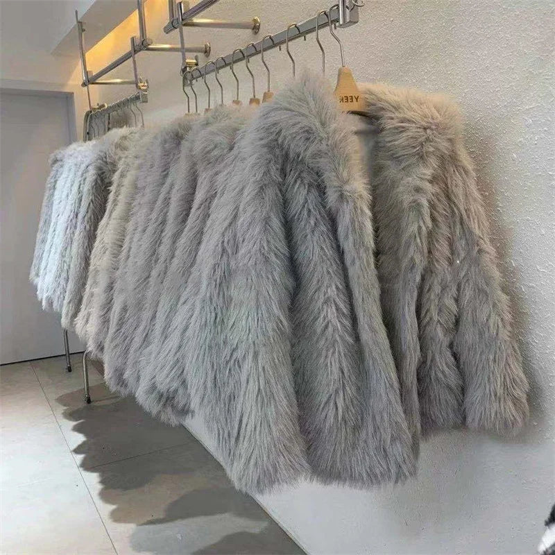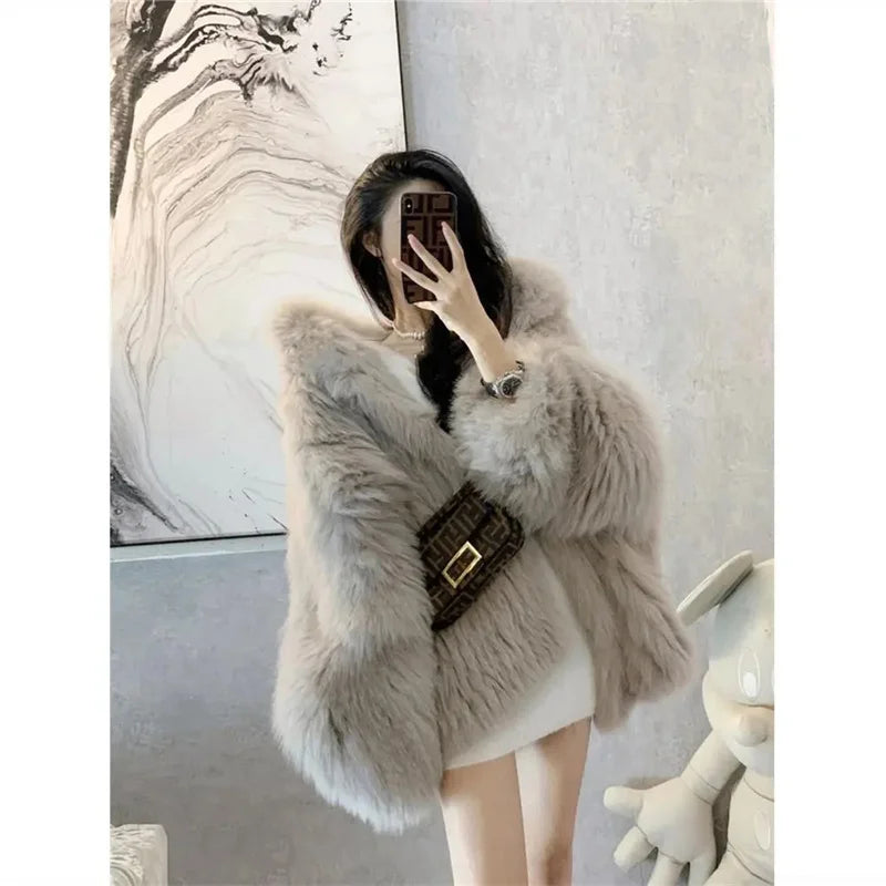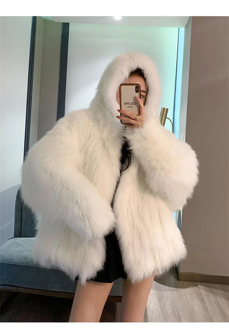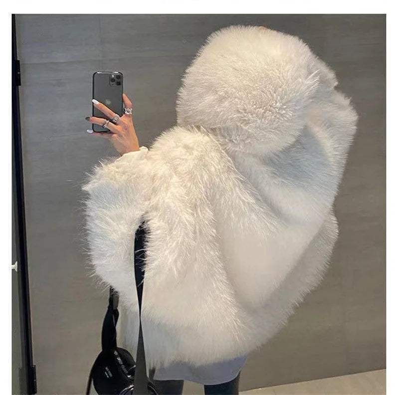Abrigo Piel Sintética Mujer Coreano - Abrigo Capucha Zorro 2024