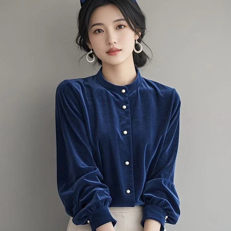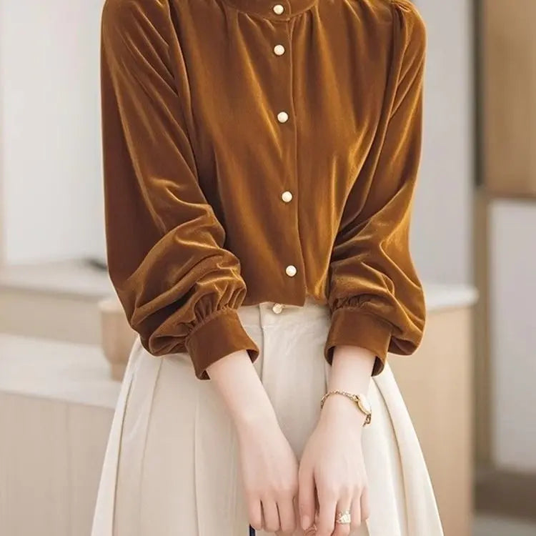 Top Terciopelo Mujer Temperamento - Top Diseño Francés Manga Larga 2025