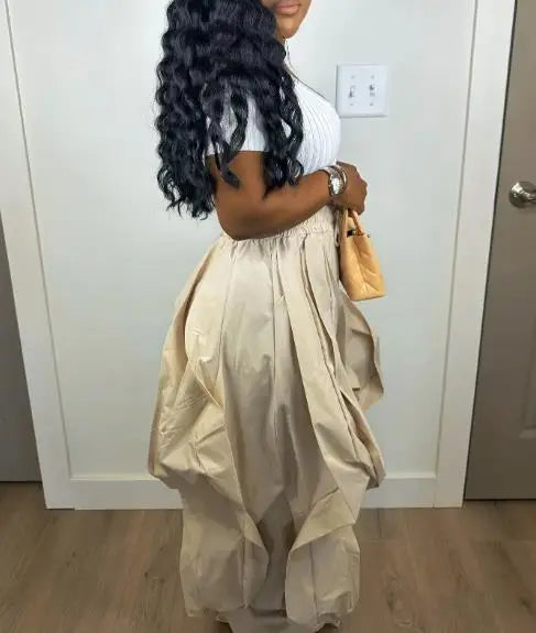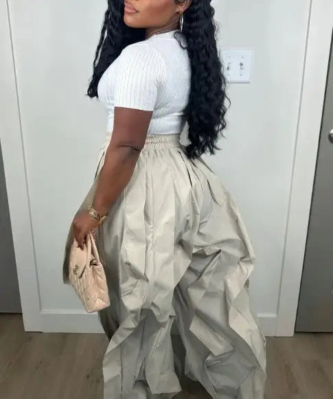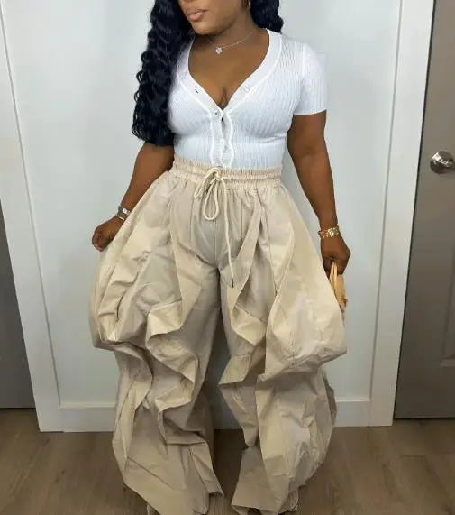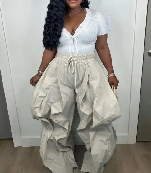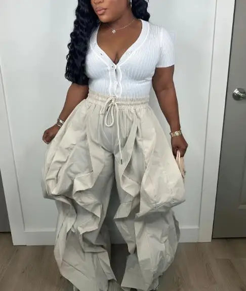 Pantalón cargo mujer elegante 2025. Diseño trabajo, estilo patchwork encaje, pantalón linterna. Perfecto commuting. Sofisticación moderna.