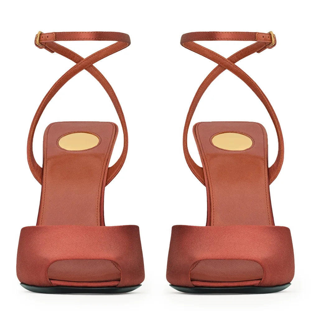 Destaca con elegancia satinada moderna gracias a nuestras sandalias de plataforma. Diseño chunky con tiras de satén y punta cuadrada, perfectas para primavera y verano 2025.