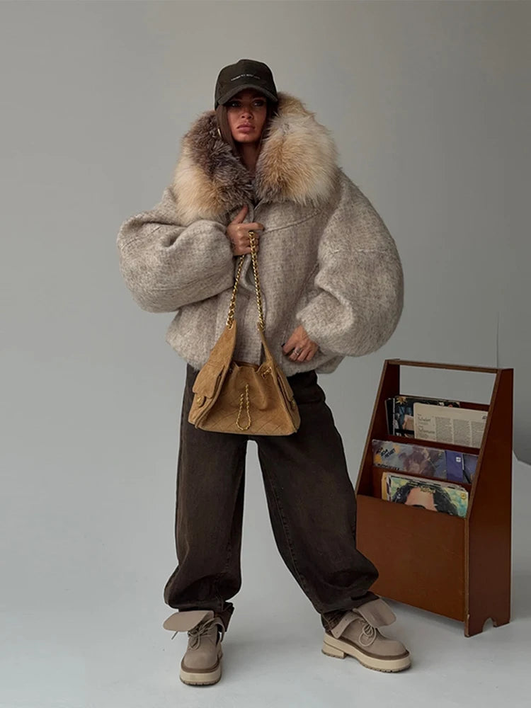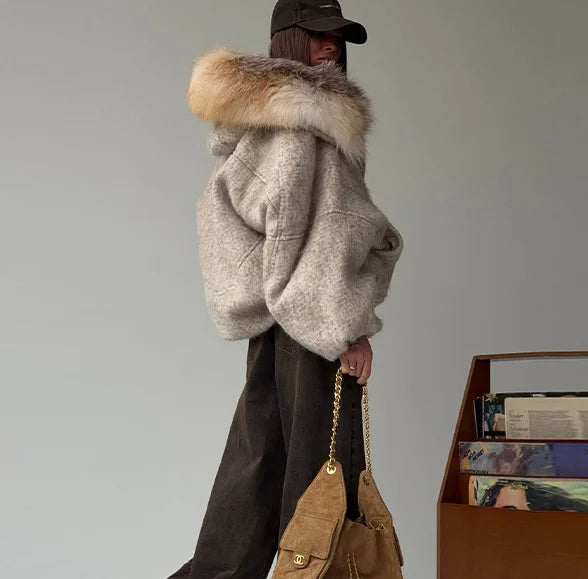 Chaqueta Mujer Cuello Piel Artificial - Chaqueta Vintage Oversize 2025