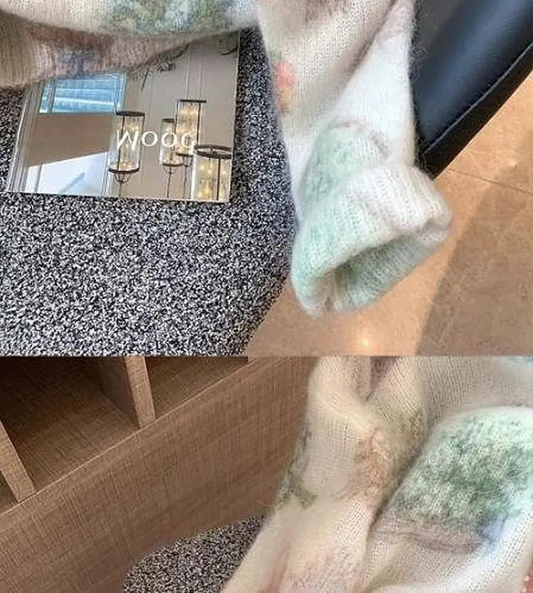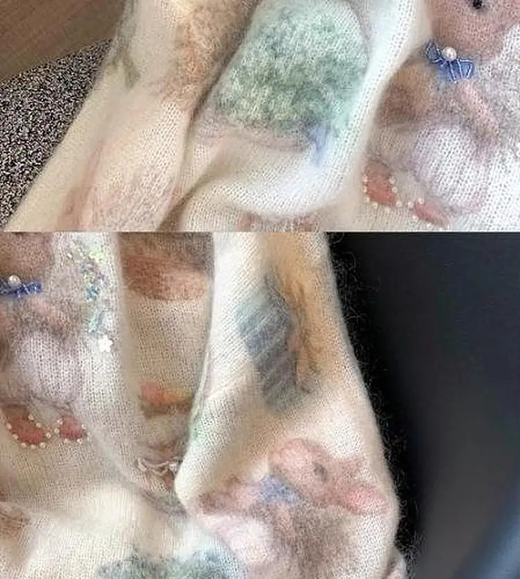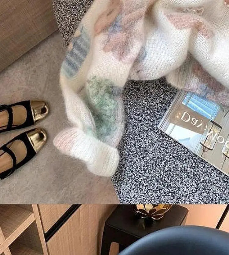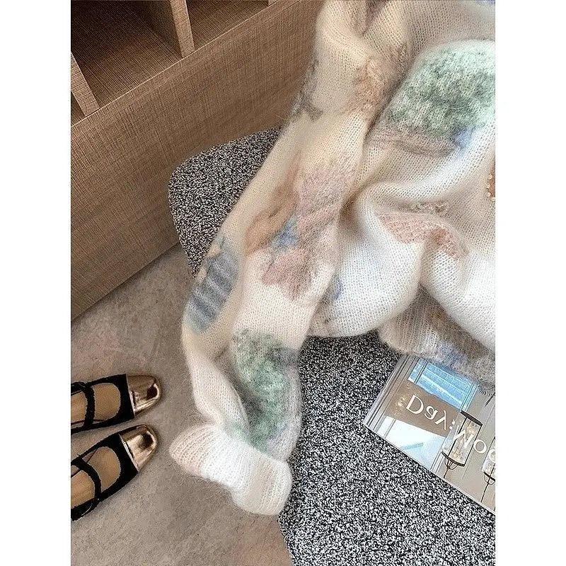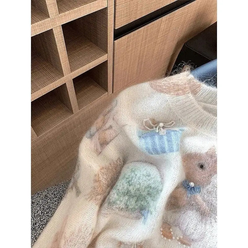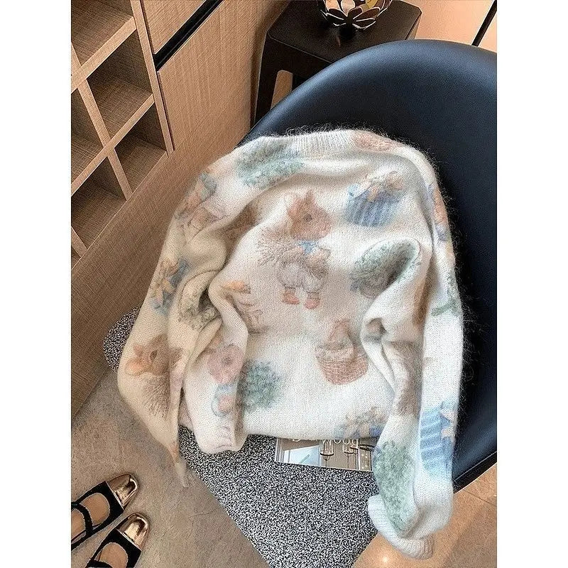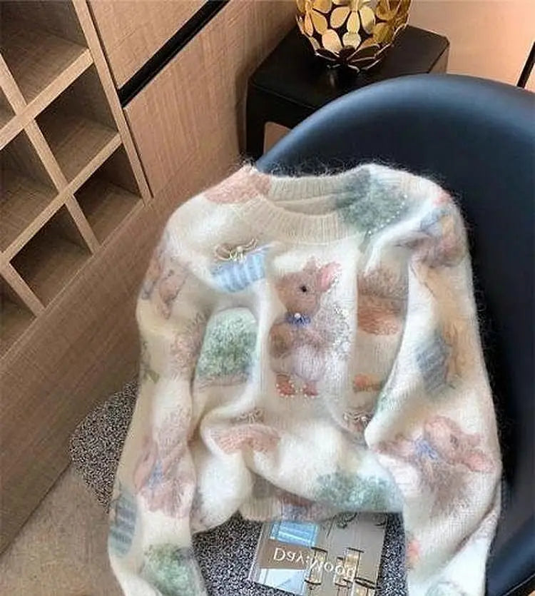 Dulzura y elegancia con este jersey de otoño-invierno. Diseño holgado versátil con estampado adorable y detalles de perlas.