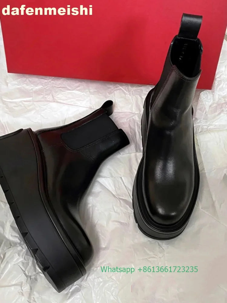 Botas Chelsea mujer negro/rojo cuña plataforma pull-on tobillo. Invierno cálidas con terciopelo aumento altura fashion botas.