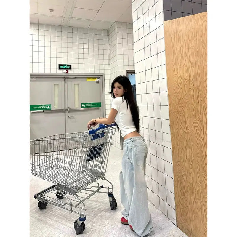Vaqueros Mujer Y2K Baggy Azul - Jeans Cintura Alta Pierna Ancha Verano