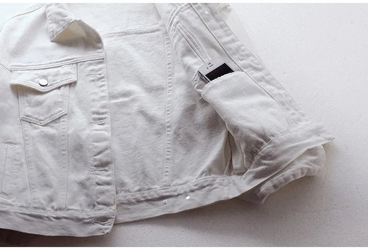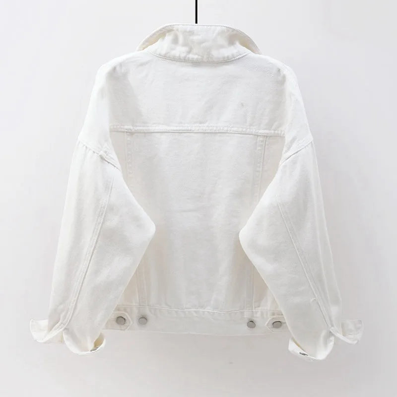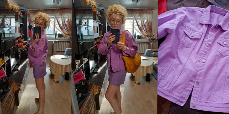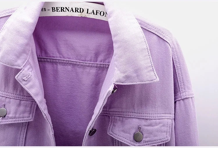 Chaqueta denim clásica para mujer jeans 2023. Jean boyfriend jackets oversize holgado, abrigo veste femme morado blanco amarillo.