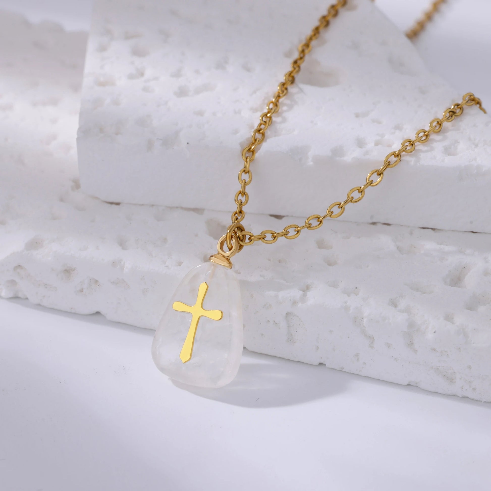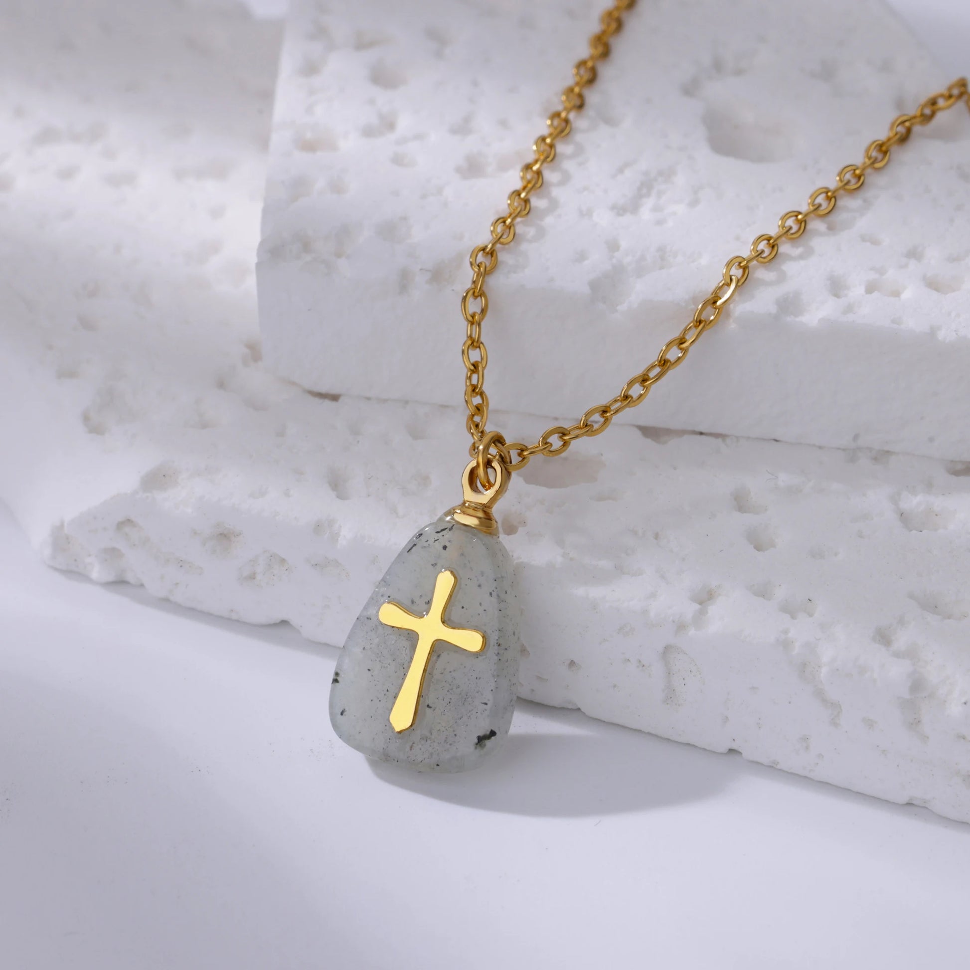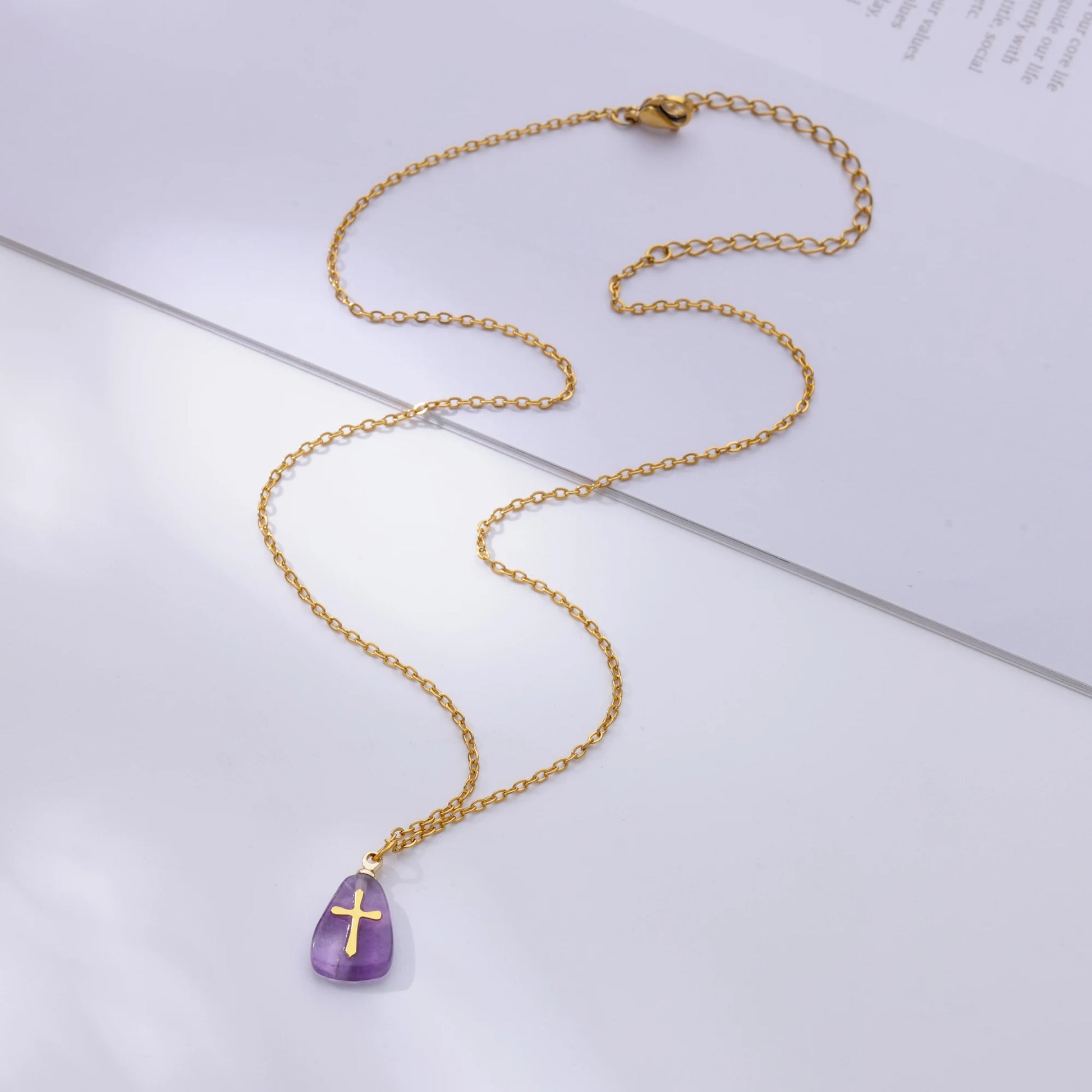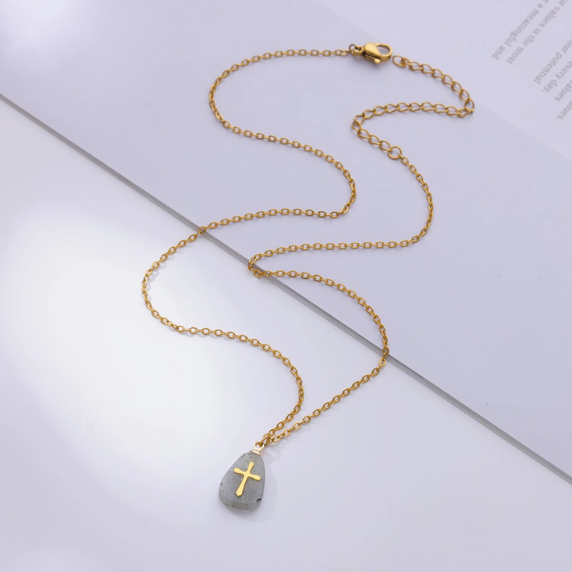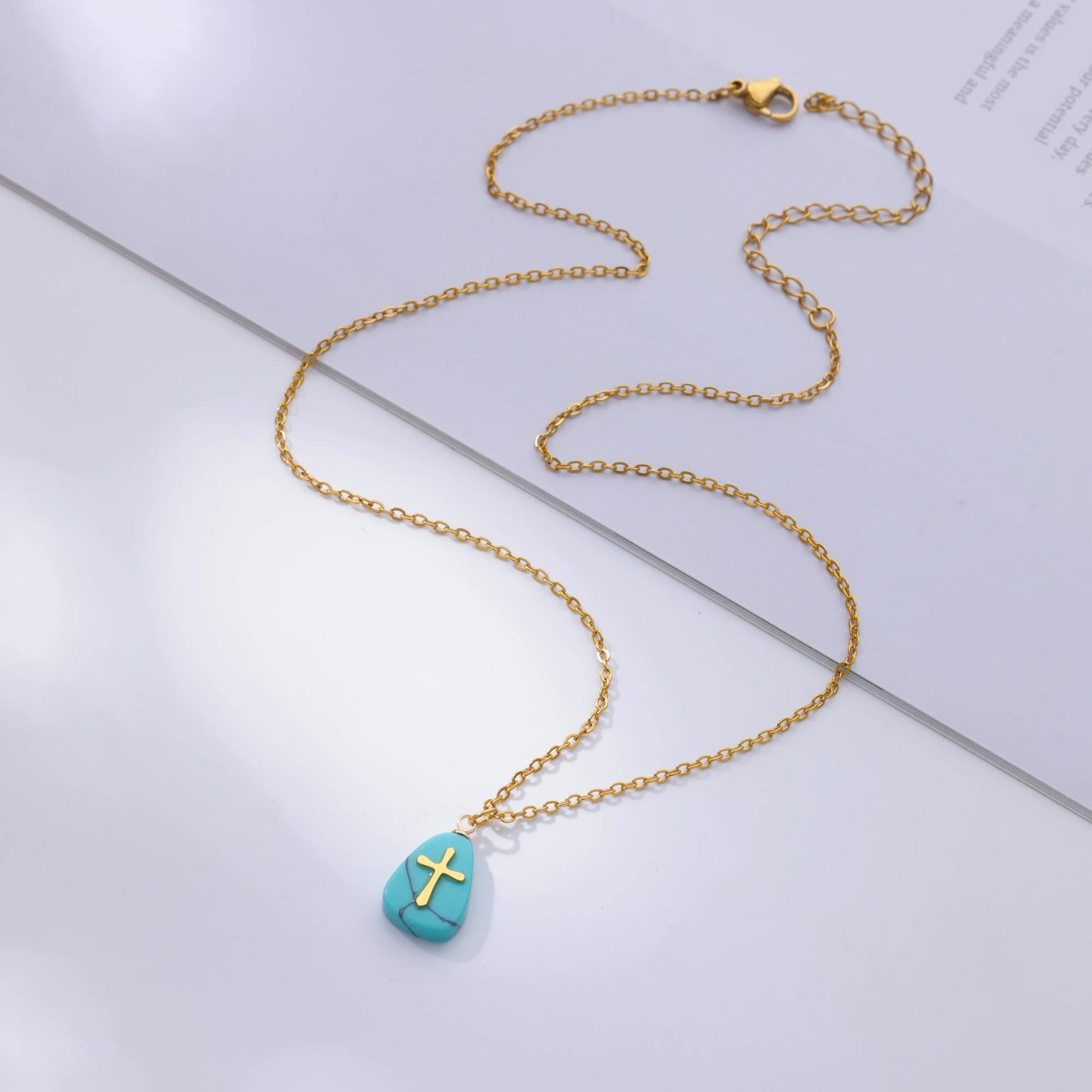 Collar Cruz con Piedras Coloridas - Joyería Elegante Mujer