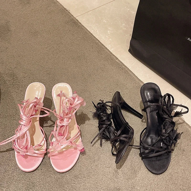 Destaca con estilo romántico elegante gracias a nuestras sandalias rosa. Diseño con correa tobillo y detalle mariposa floral, perfectas para fiestas y eventos 2025.