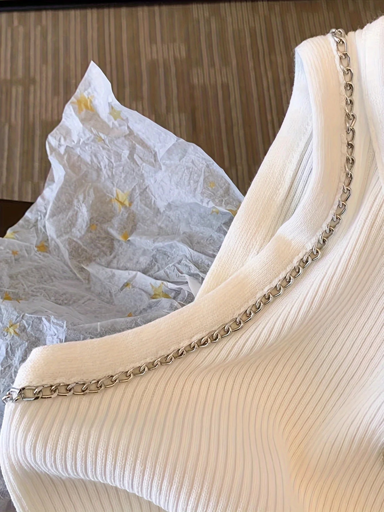 Top Crop Punto con Cadena - Elegancia Casual Primaveral
