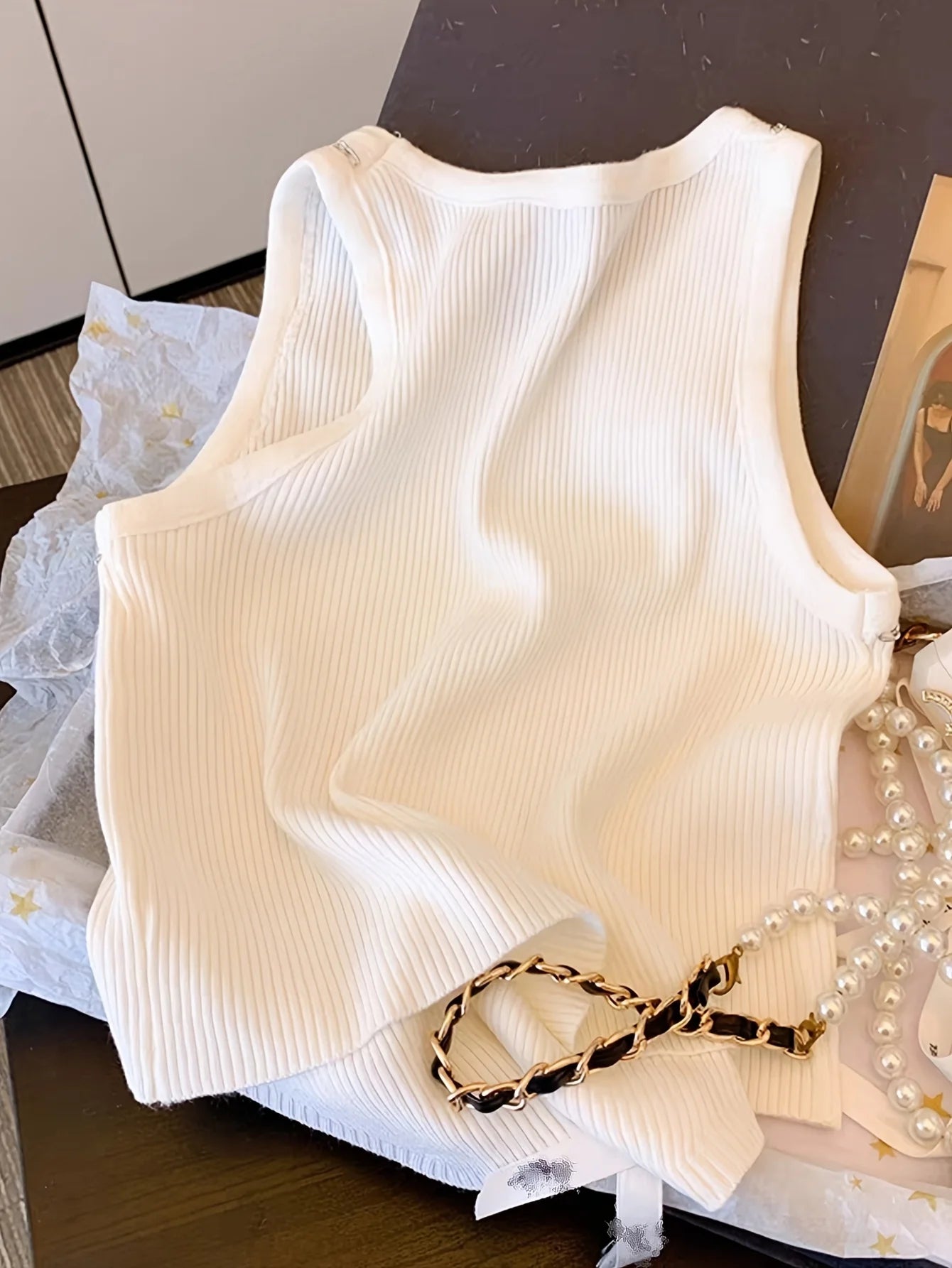 Top Crop Mujer Punto Cadena - Camiseta Sin Mangas Primavera