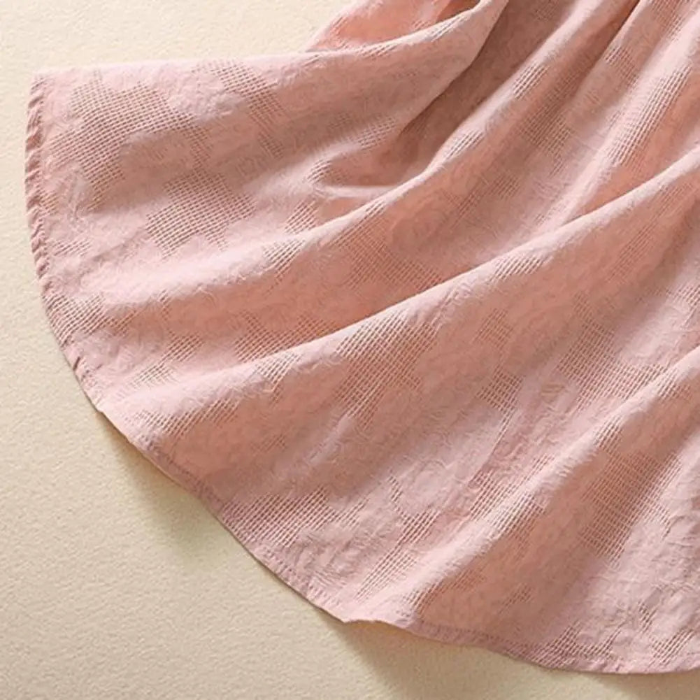 Blusa algodón lino con capucha. Manga corta, botones, diseño holgado. Perfecta verano. Frescura y estilo.