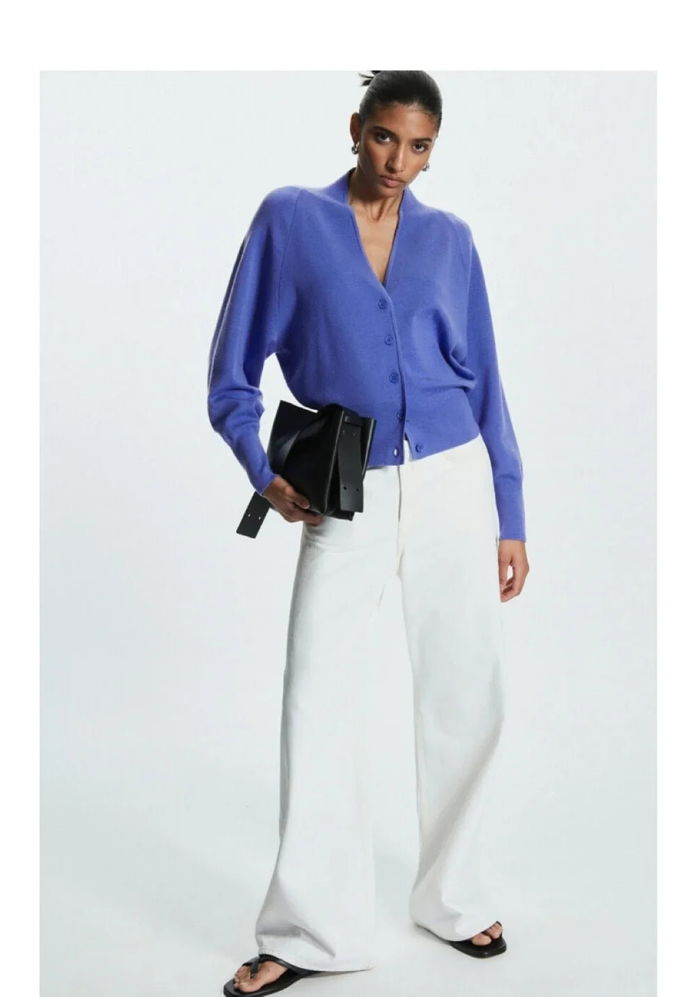 Elegancia casual con este cárdigan de lana cuello V para primavera 2025. Mezcla de lana de calidad premium.