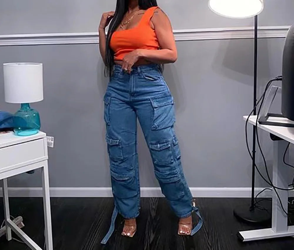 Jeans Cargo Mujer Europeos - Pantalón Multibolsillos Primavera