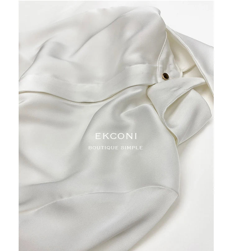Camisa satén seda mujer vintage - Elegancia atemporal en color blanco clásico.