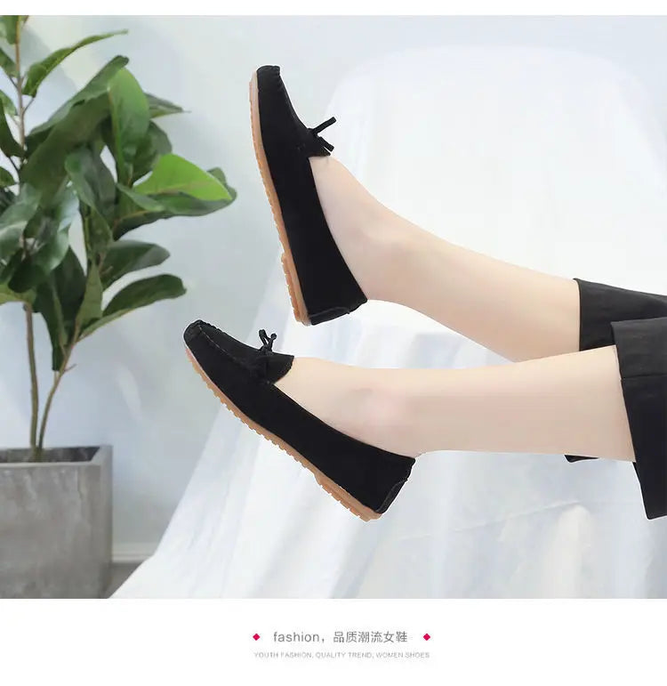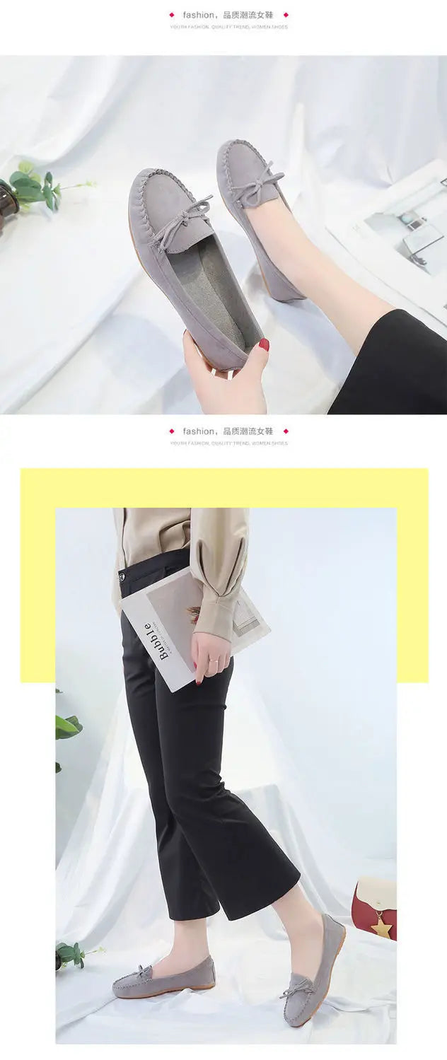 Elegancia suede con nuestros zapatos slip-on ballet flats. Diseño loafers plano perfecto para otoño con estilo mom shoes casual.