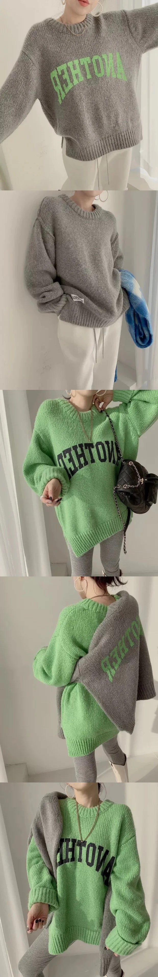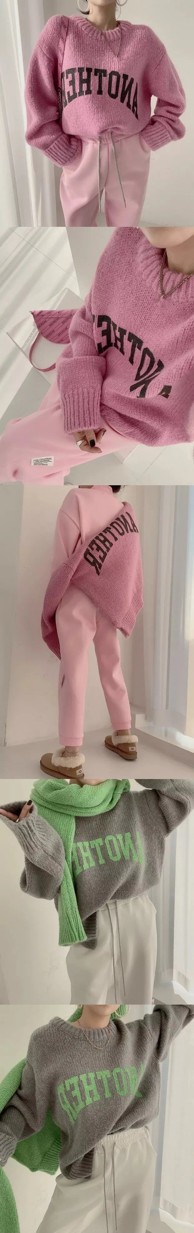 Estilo coreano chic con este suéter de punto grueso con estampado de letras. Diseño suelto perfecto para invierno con colores candy.