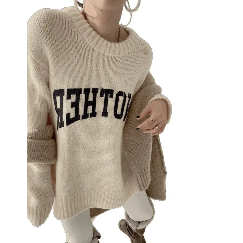 Suéter Mujer Coreano Letras Invierno - Jersey Punto Grueso Suelto