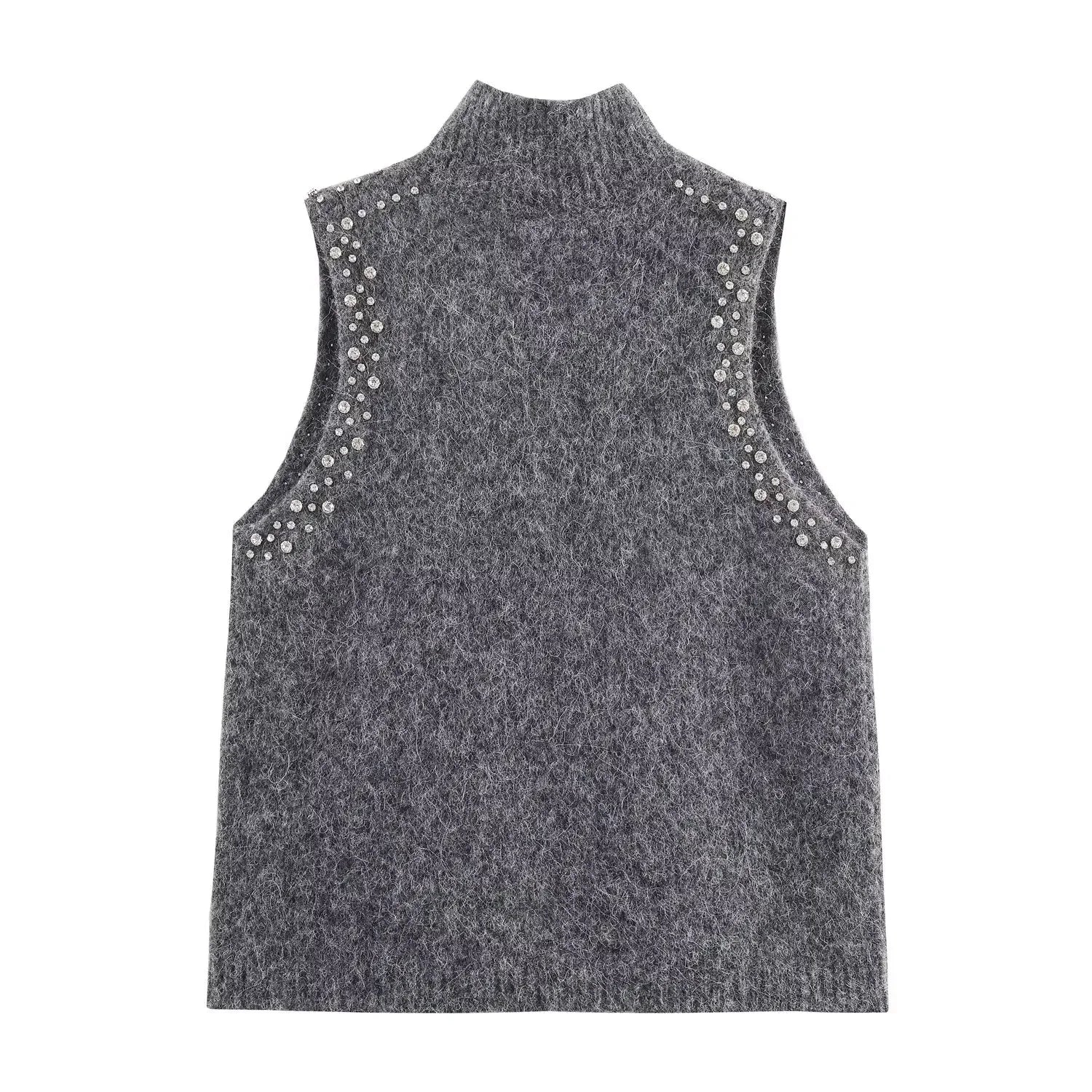 Elegancia casual con este chaleco sin mangas de punto 2025. Diseño cuello alto slim fit perfecto para otoño.