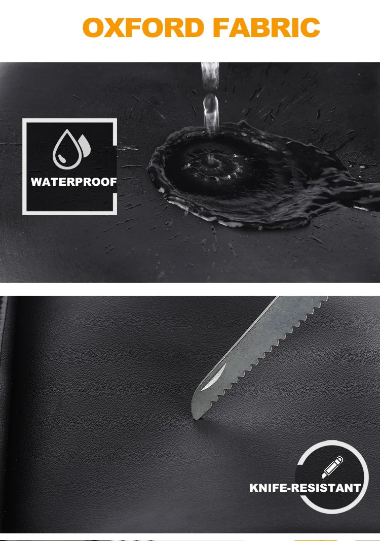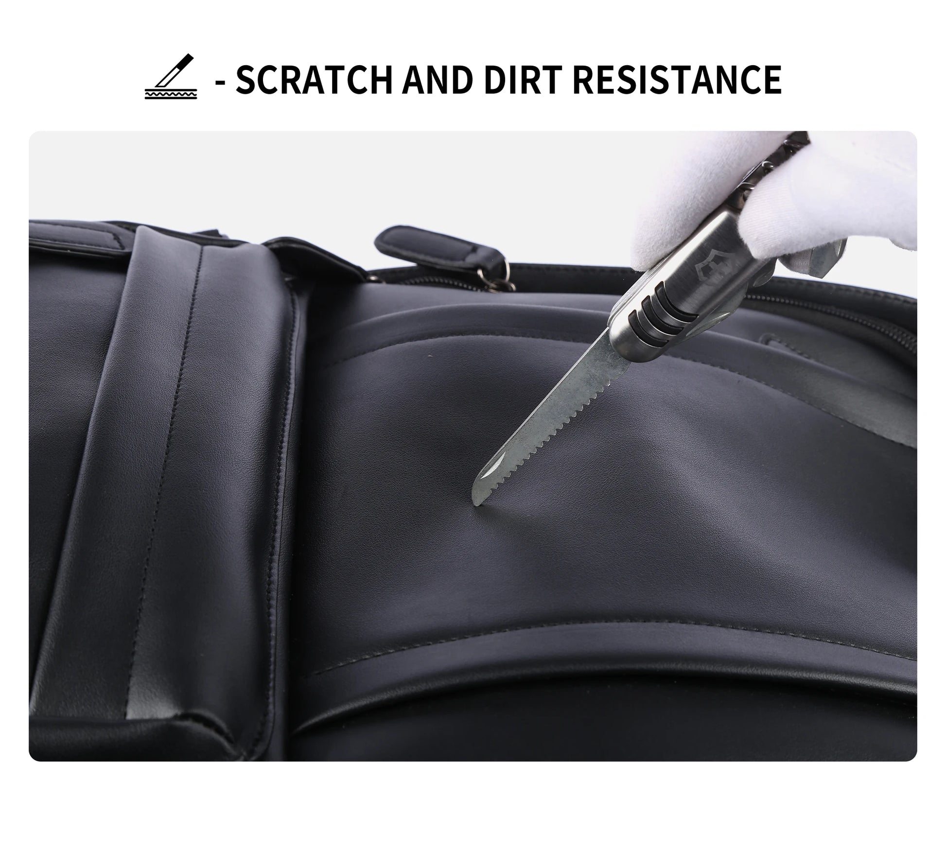 - Cuero resistente al agua: Protege tus pertenencias de la lluvia y derrames