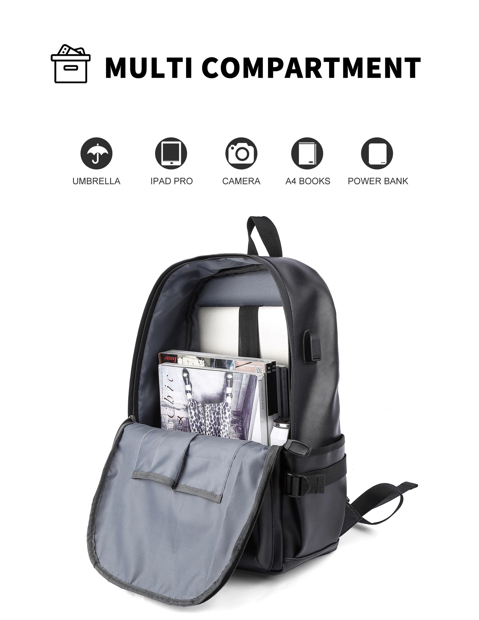 Mochila Cuero Hombre Laptop 14 Pulgadas - Viaje Business Puerto USB Resistente al Agua Daypack