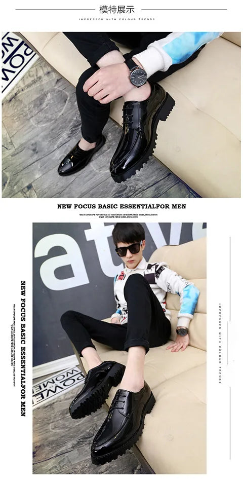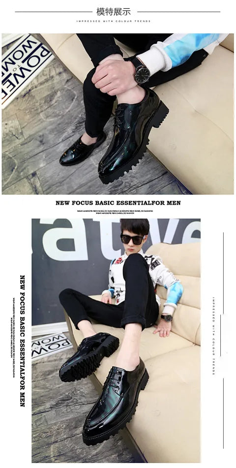 Mocasines Elegantes Hombre Cuero Charol - Lujo Oxford