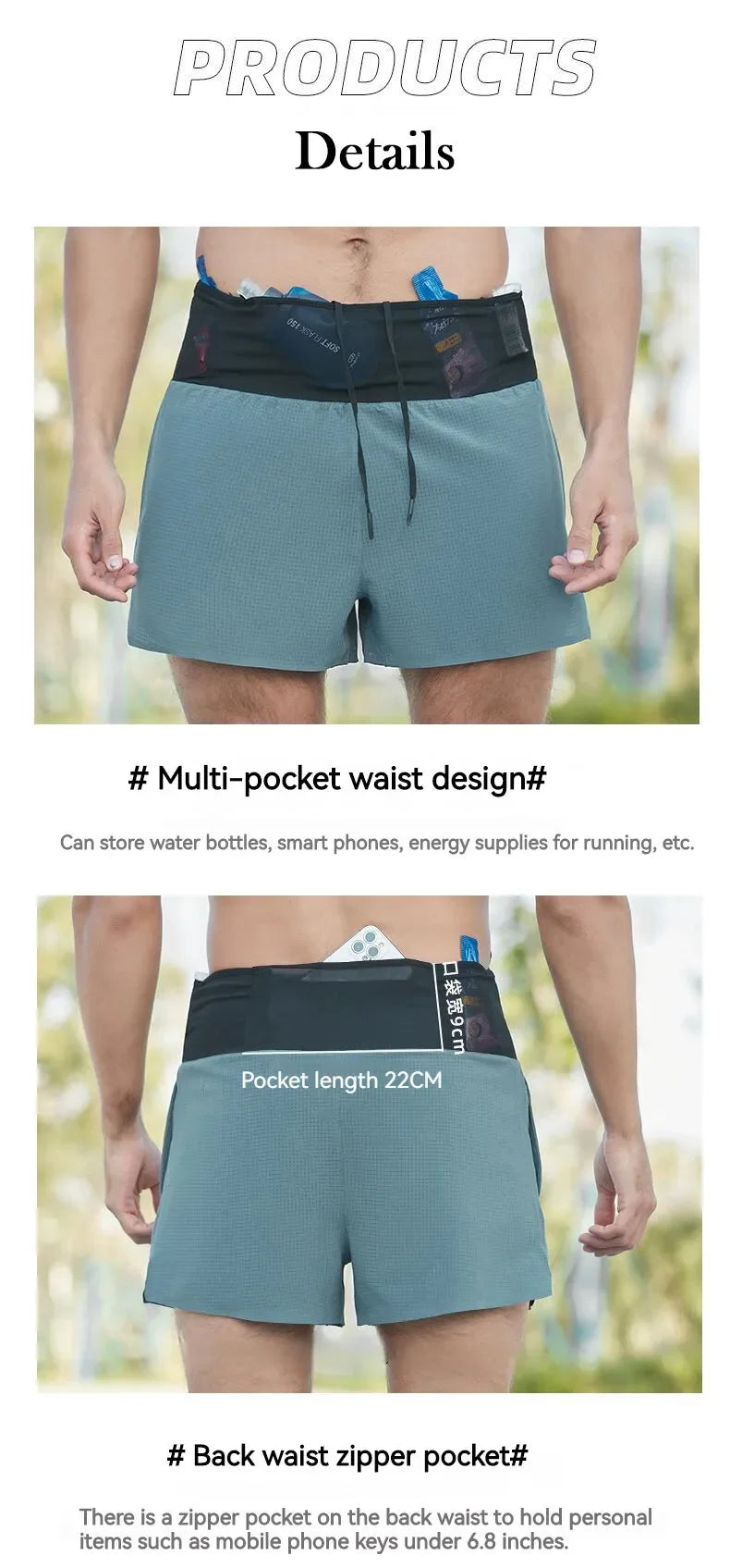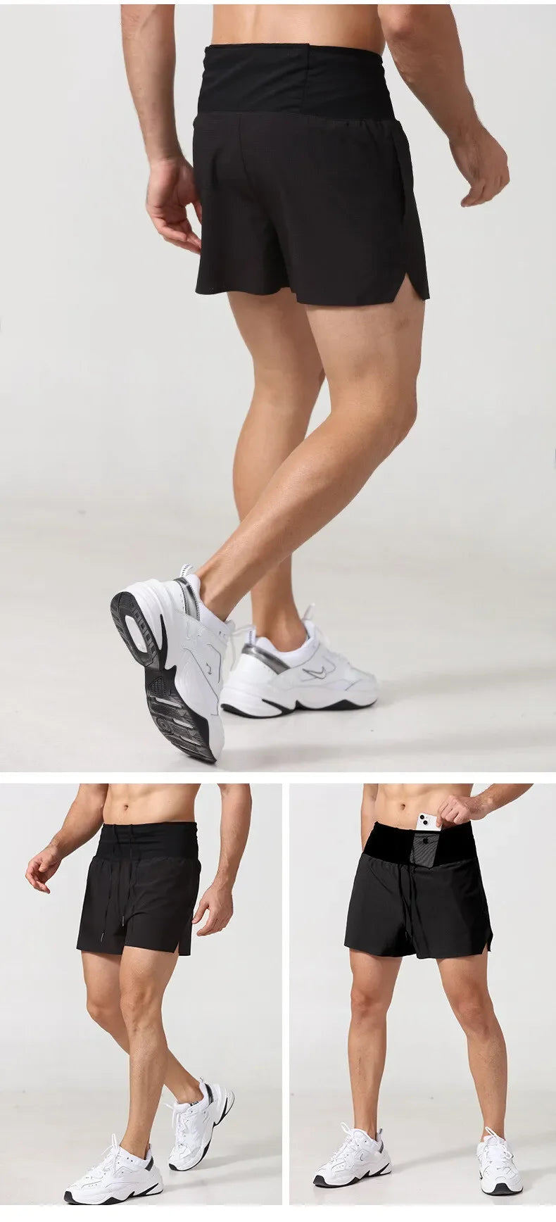 Shorts Running Hombre 2 en 1 Marathon - Pantalones Secado Rápido Multi-Bolsillos Riñonera