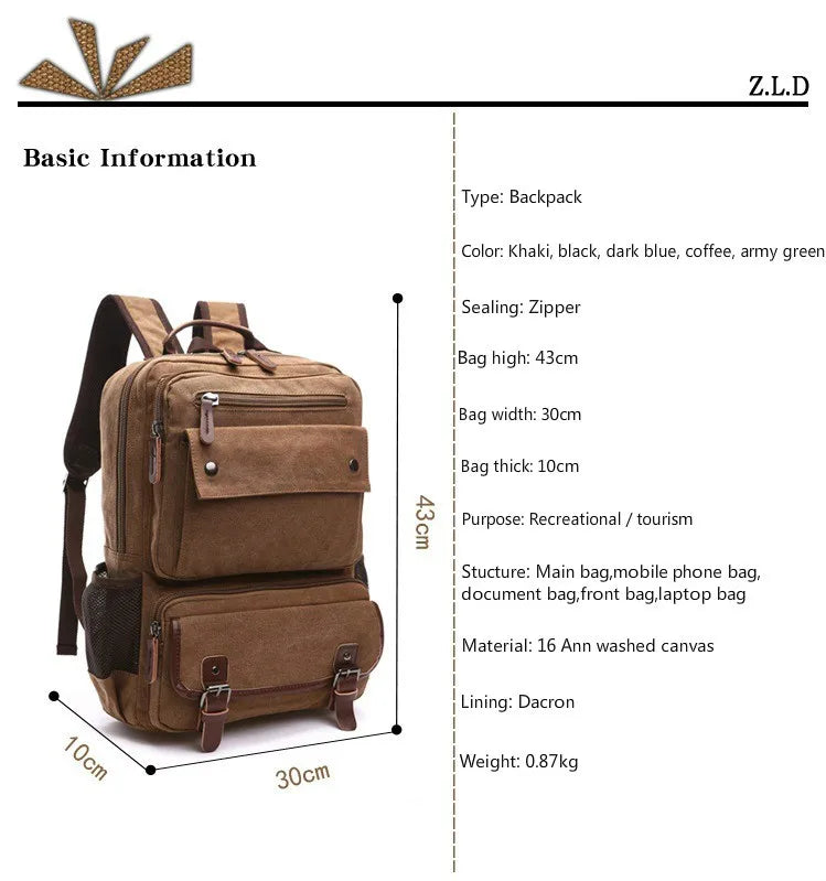 Mochila Canvas Vintage Hombre - Laptop Universidad Estudiante Escolar Adolescentes Gran Capacidad