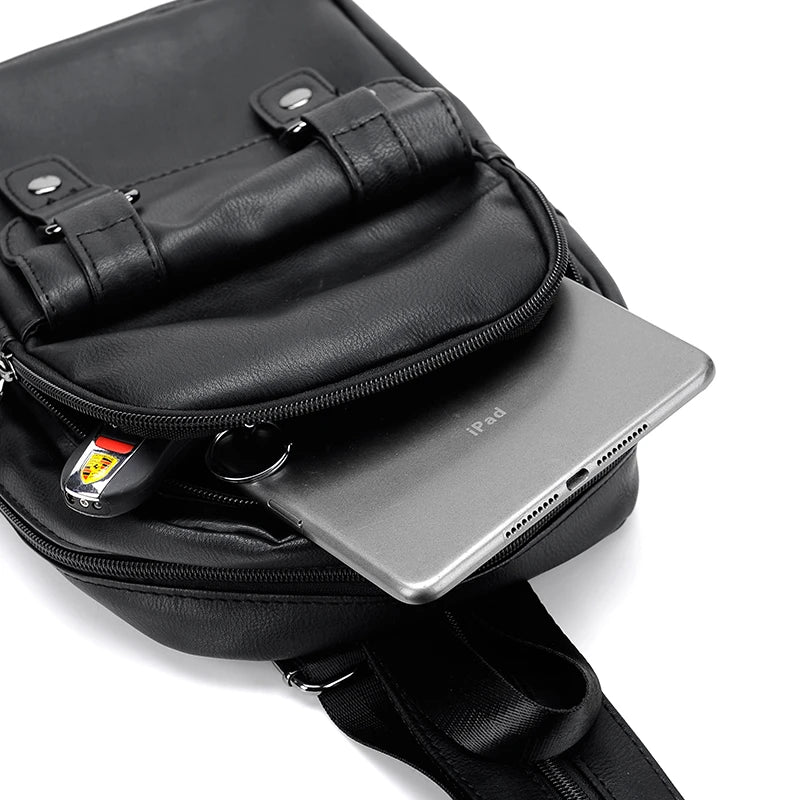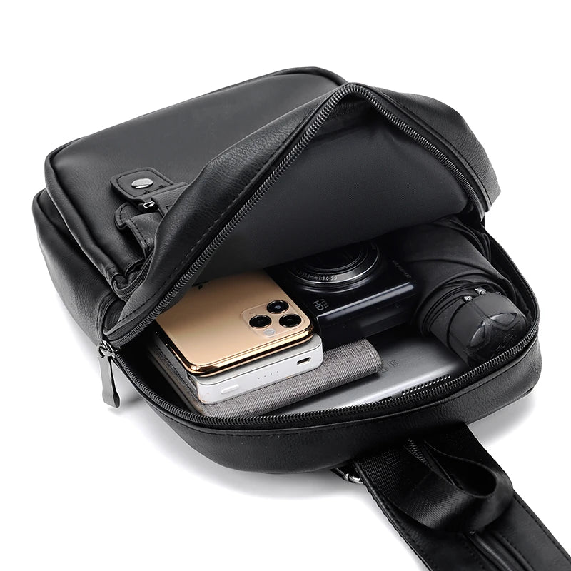 Mochila Pecho Pequeña Hombre Cuero PU - Bolsa Hombro Business Casual Crossbody