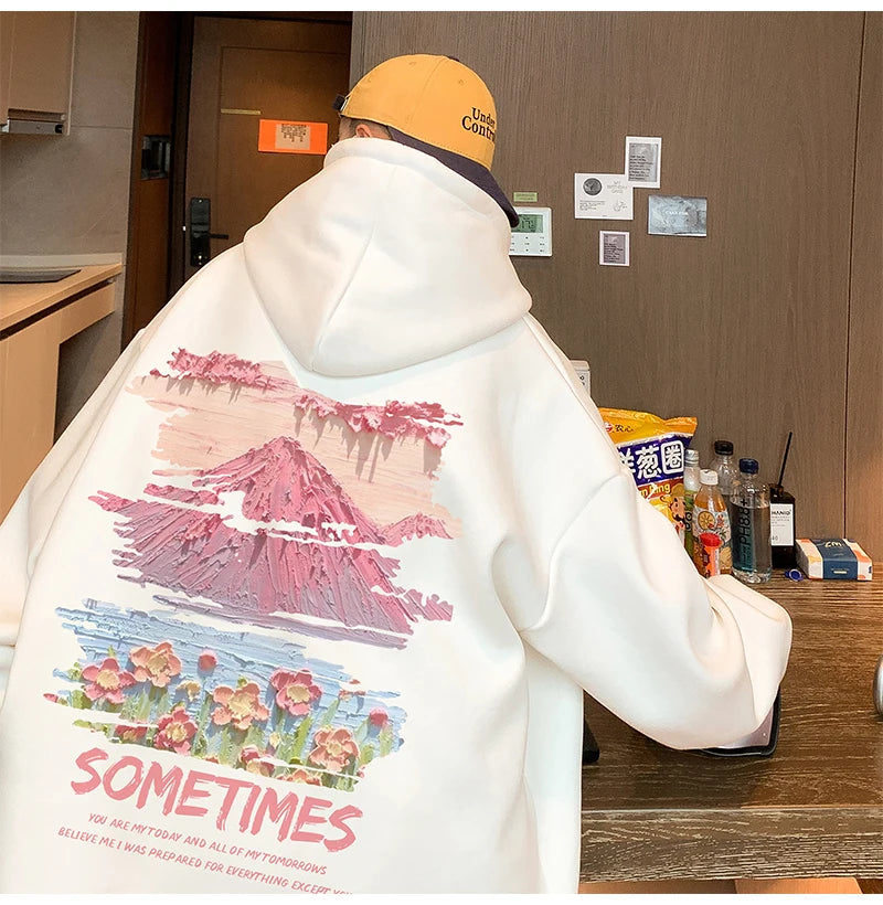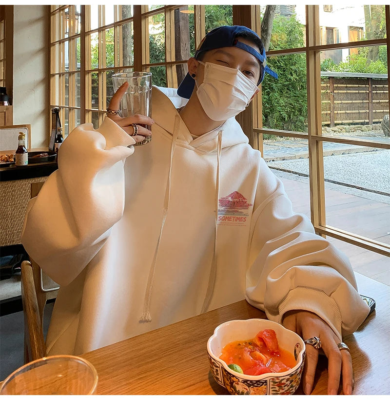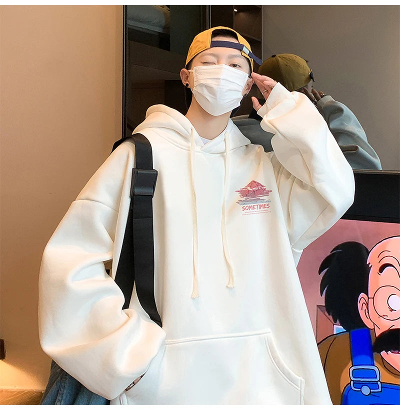 Sudadera oversized para hombre en color blanco, disponible hasta talla 5XL. Diseño plain (liso) con capucha, perfecto para looks casuales y uso diario.