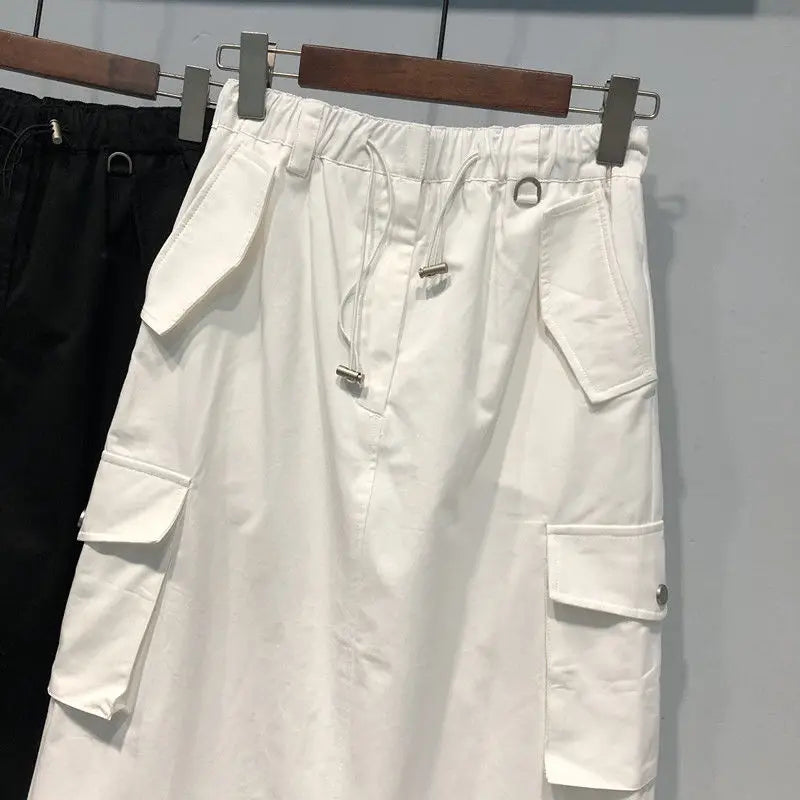 Destaca con estilo cargo funcional gracias a nuestra falda Y2K. Diseño largo con bolsillos y cintura elástica con cordón, perfecta para primavera y verano.