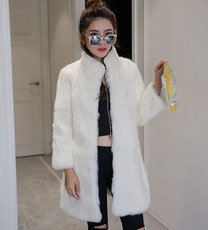 Abrigo Piel Conejo Mujer Real - Abrigo Largo Completo Invierno
