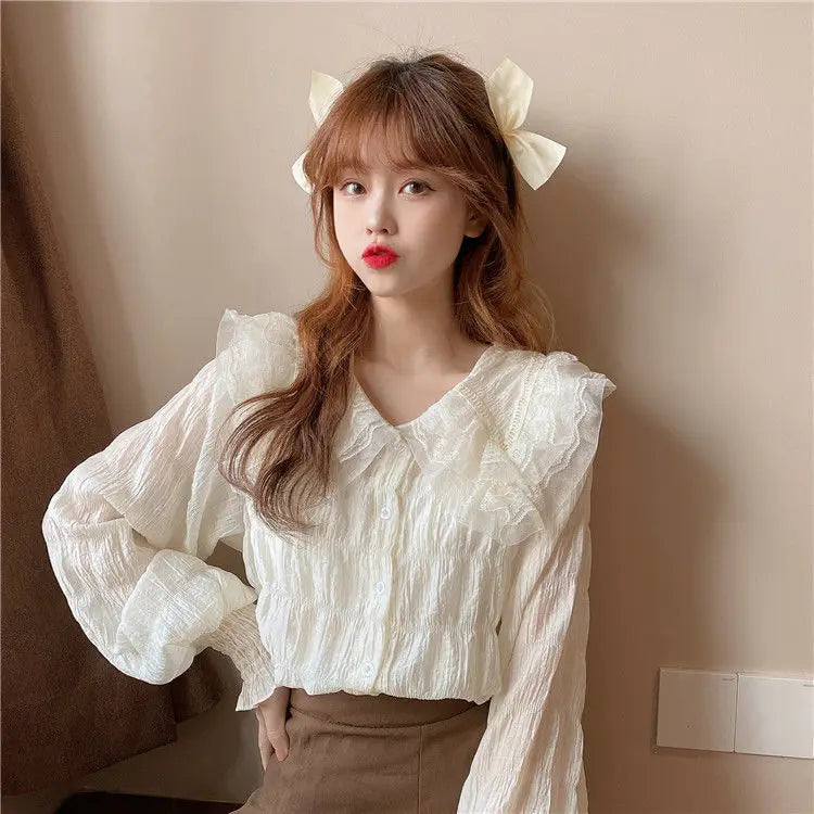 Camisa Cuello Peter Pan Mujer Coreana - Blusa Manga Larga Kawaii Primavera