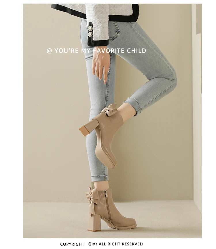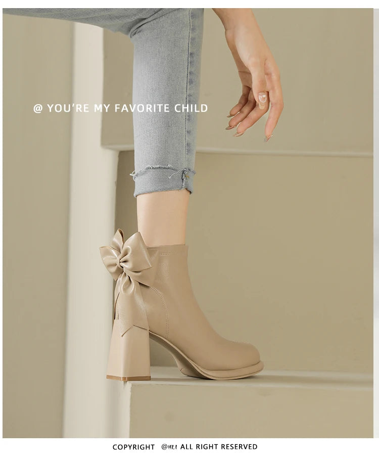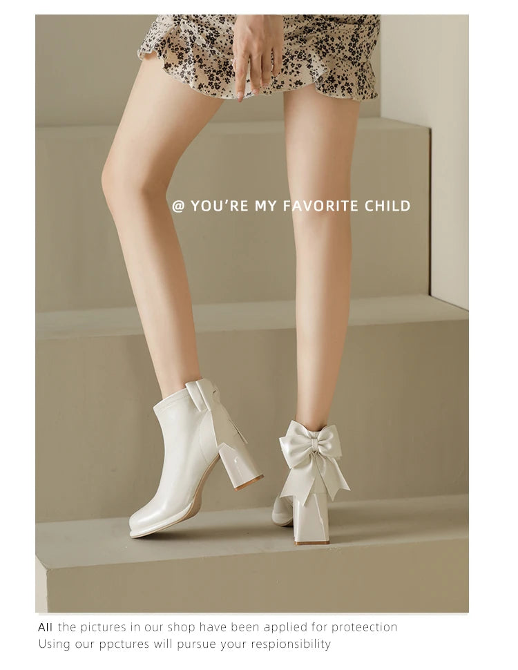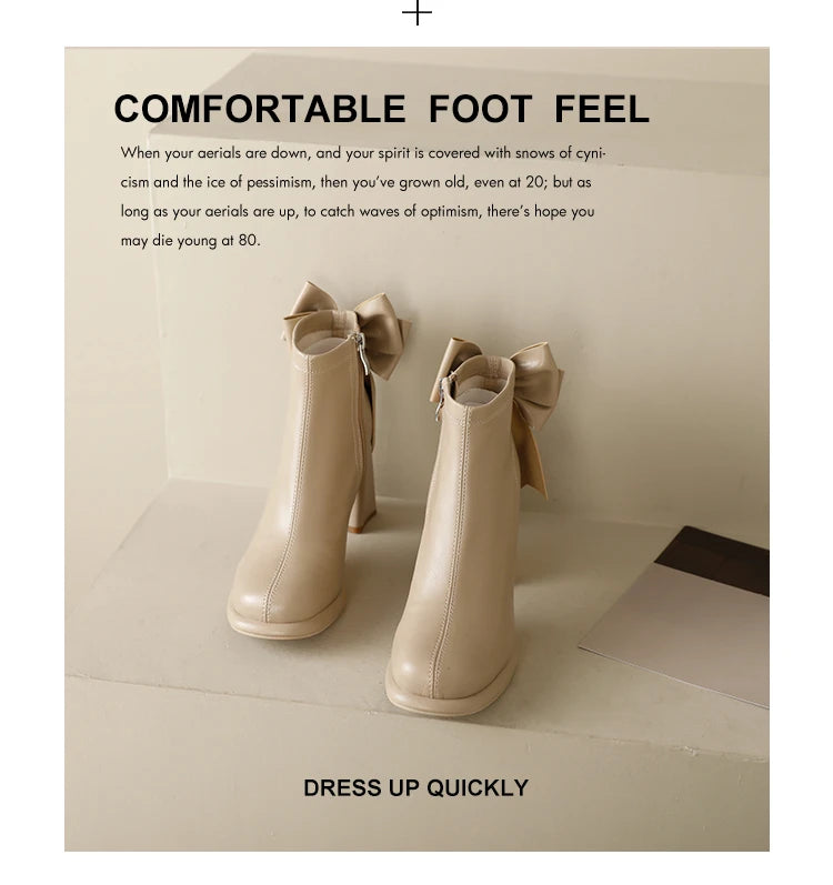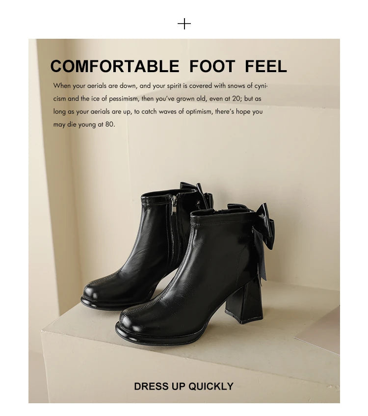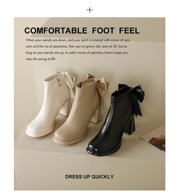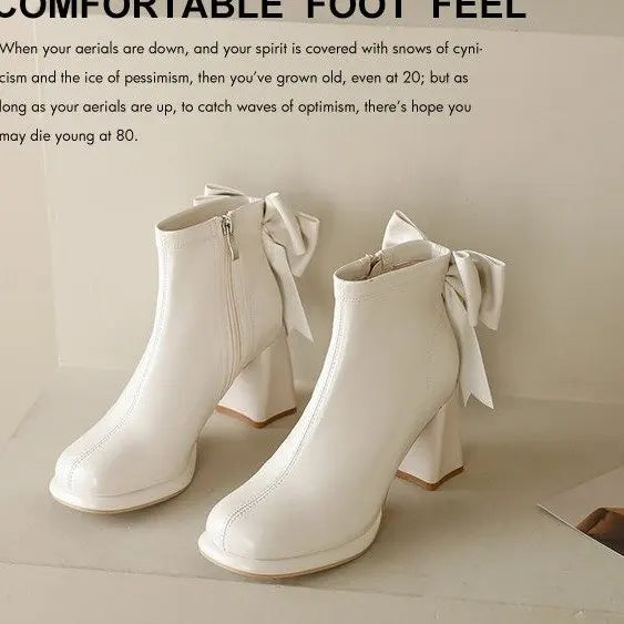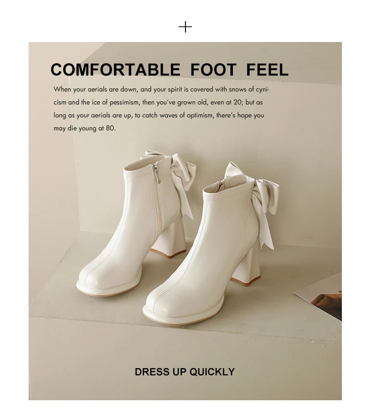 Botas Tobillo Mujer Plataforma Tacón - Lazo Trasero Calcetín