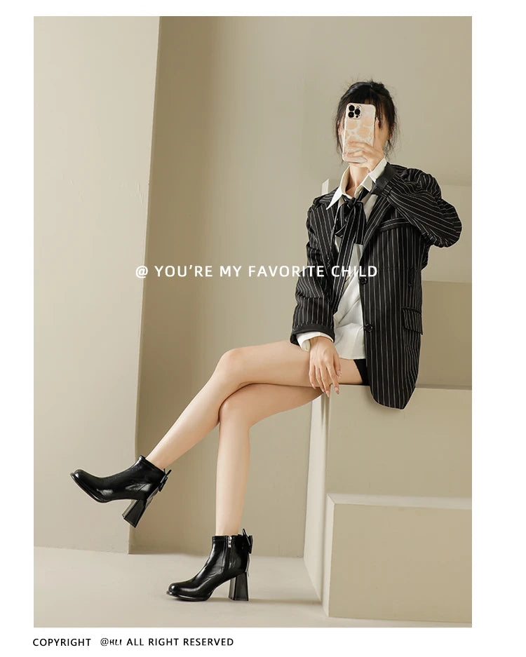 Botas plataforma tacón alto tobillo para mujer lazo trasero. Botas cortas calcetín fino botas otoño invierno damas casual punk fiesta zapatos.