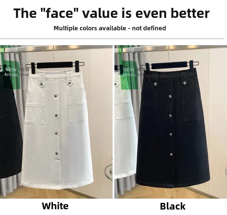 Falda Mujer Denim Tallas Grandes Primavera - Midi Cintura Alta Elástica