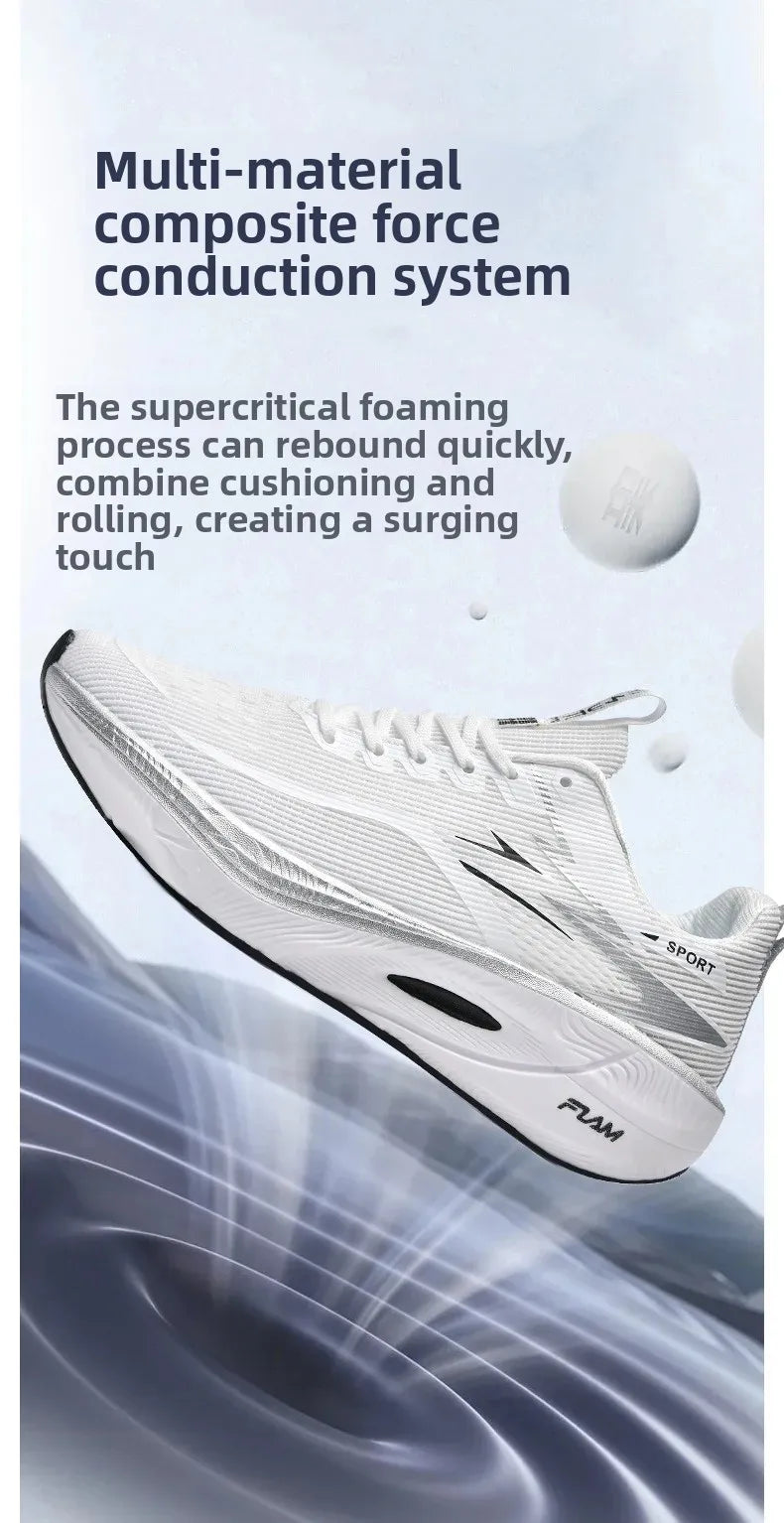 Alcanza tu máximo rendimiento con estas zapatillas profesionales de maratón equipadas con placa de carbono para máxima propulsión y absorción de impactos.