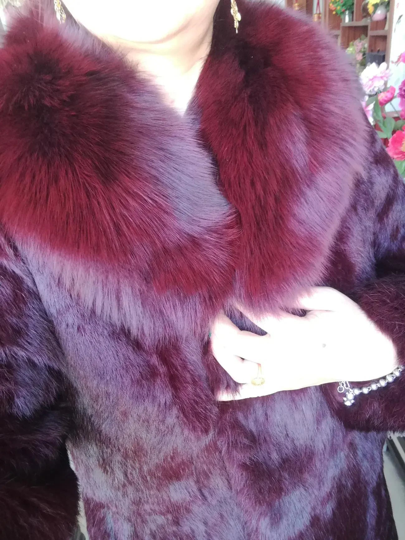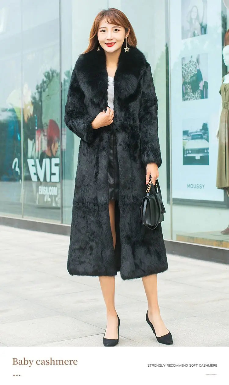 Abrigo Piel Conejo Rex Mujer - Abrigo Largo Cuello Zorro Fashion Invierno