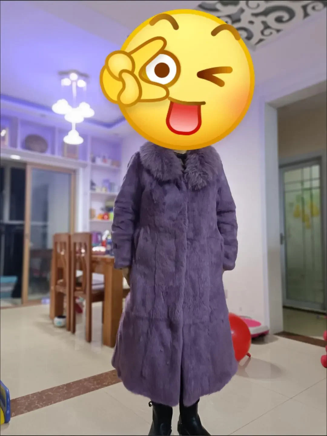 Abrigo piel conejo rex mujer otoño-invierno. Diseño largo grueso, cuello zorro real, estilo fashion. Perfecto cálido. Lujo elegante.
