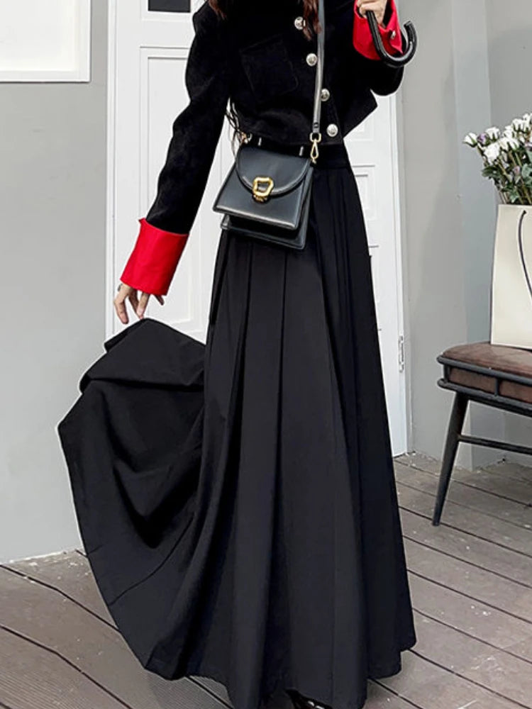 Destaca con elegancia plisada clásica gracias a nuestra falda de primavera. Diseño largo de color sólido estilo coreano, perfecta para uso elegante y casual.