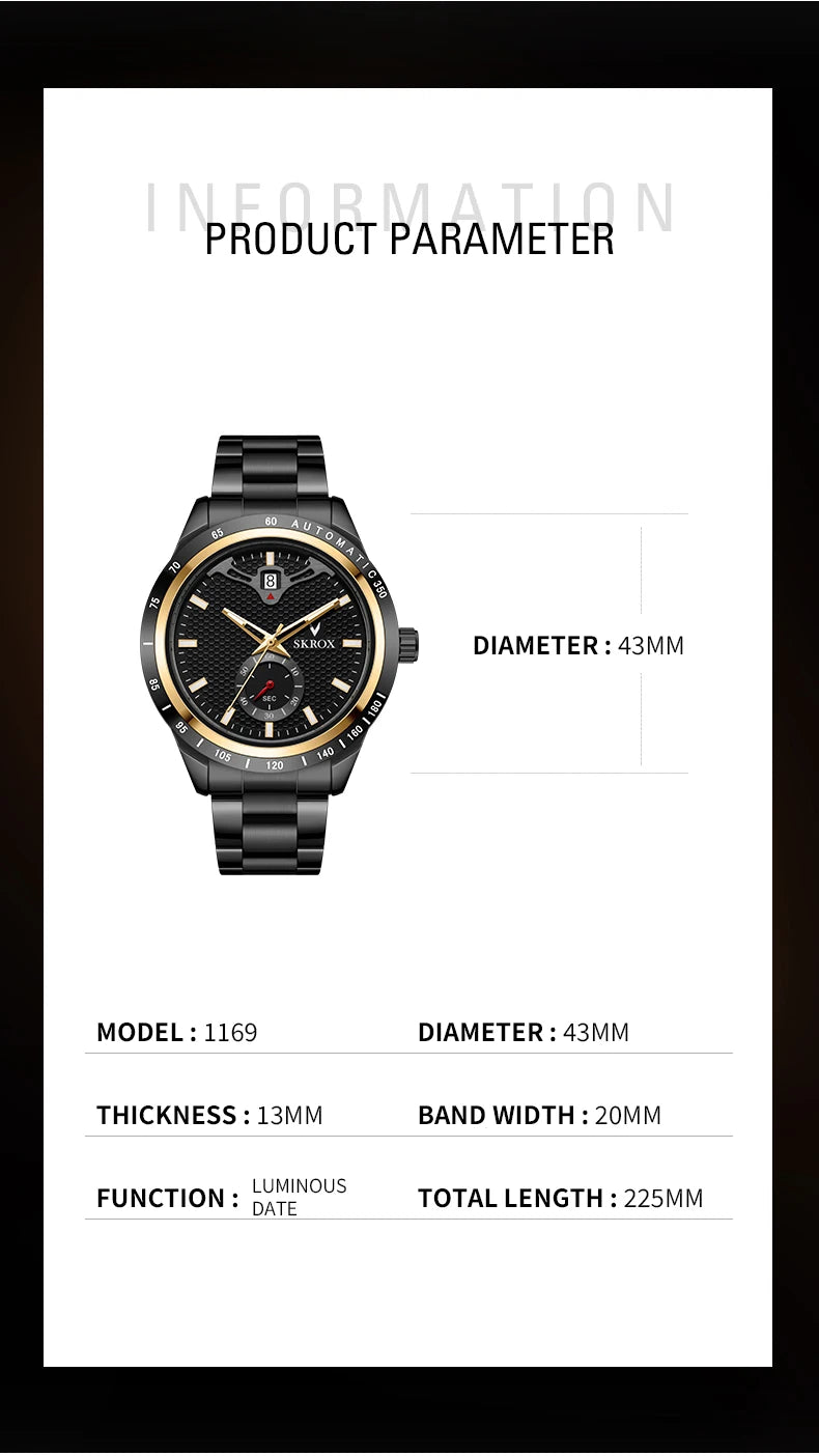 Reloj SKROX Automático Mecánico - Zafiro Acero Inoxidable Military Resistente al Agua