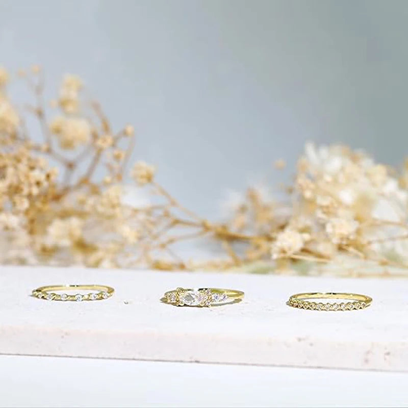 Anillos Apilables Oro Mujer - Delicados Chapado 14K Circonita