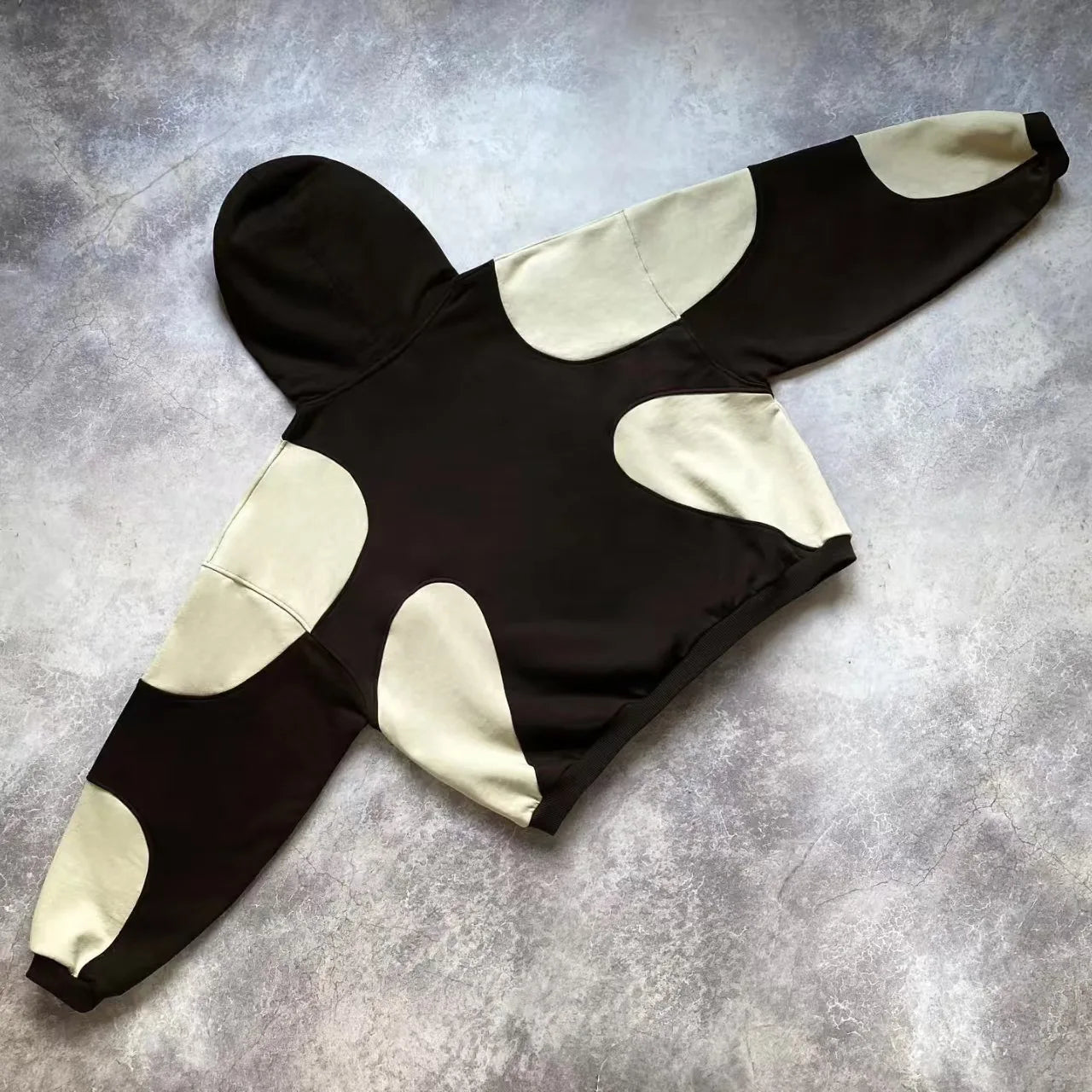 Sudadera streetwear goth Harajuku con patrón negro gris para hombre. Hoodie Y2K fashion americana otoño invierno, ropa casual tendencia sweatshirt holgado.