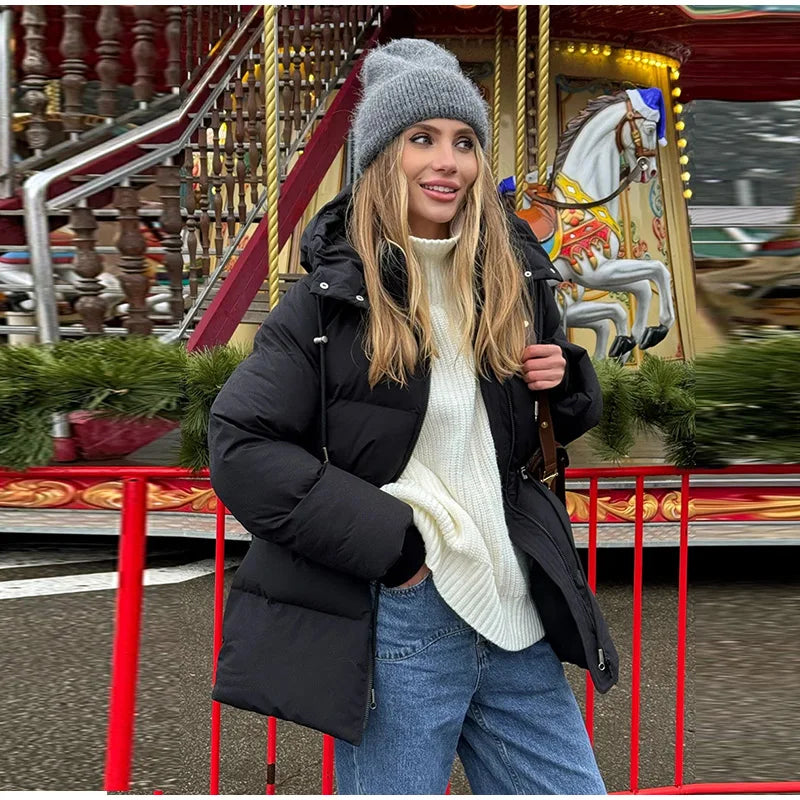 Chaqueta algodón mujer gruesa 2025. Diseño cuello alto cremallera, capucha desmontable, manga larga. Perfecta invierno. Calidez chic.