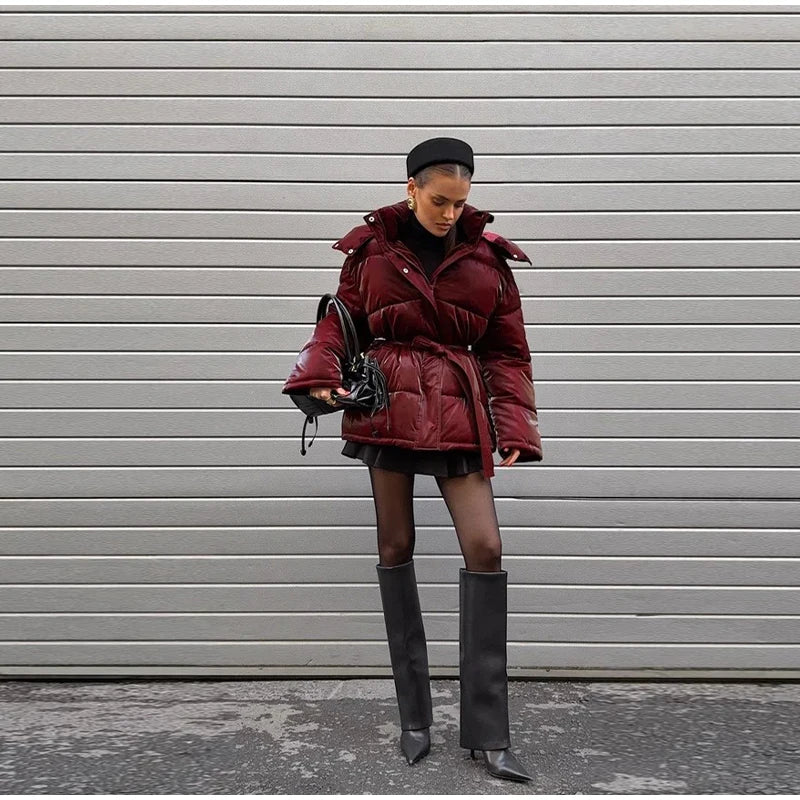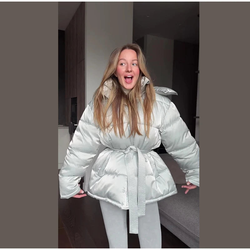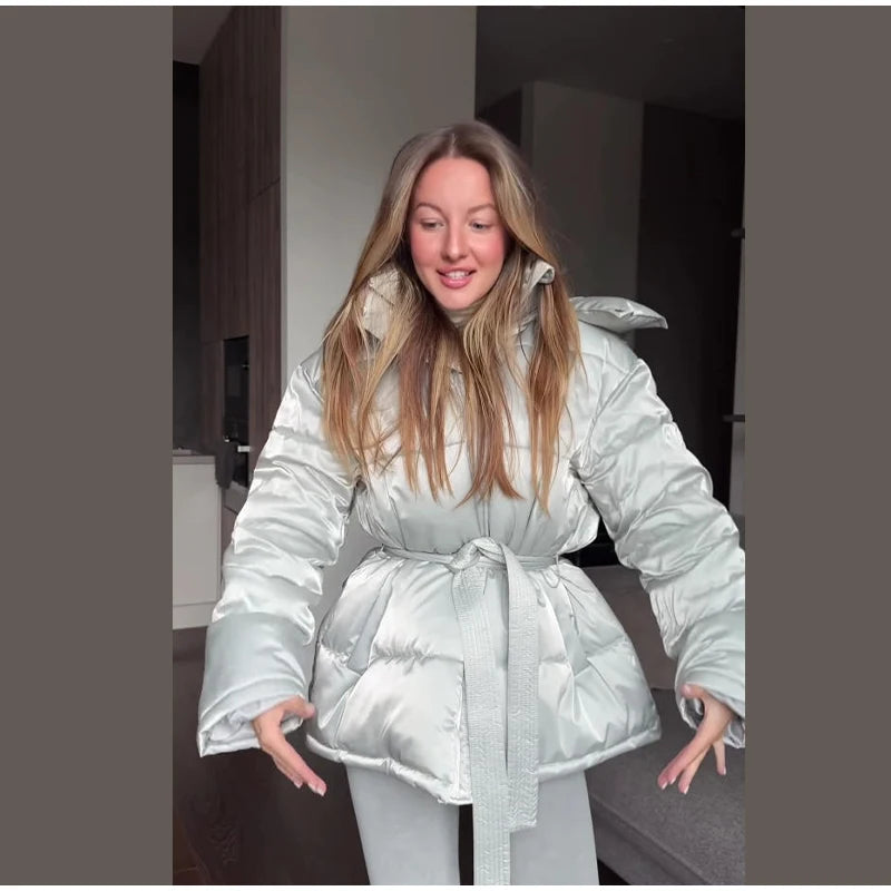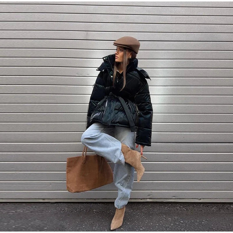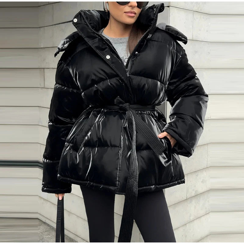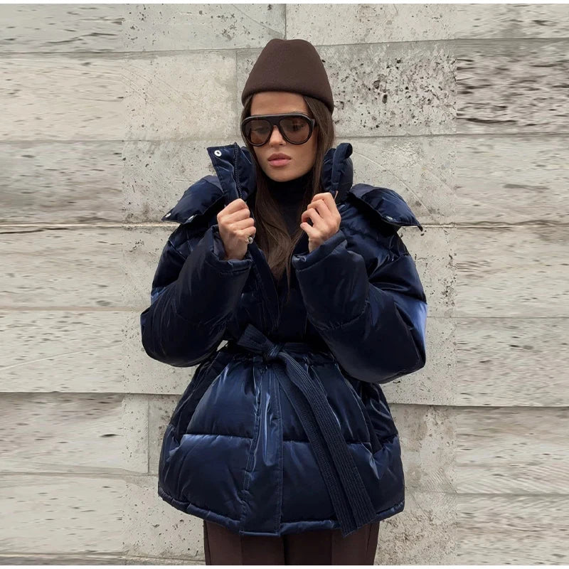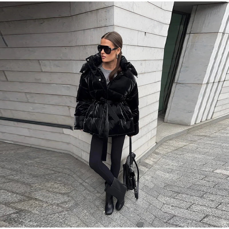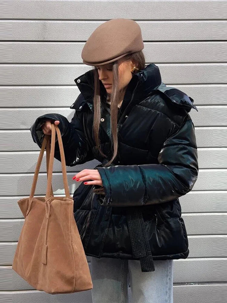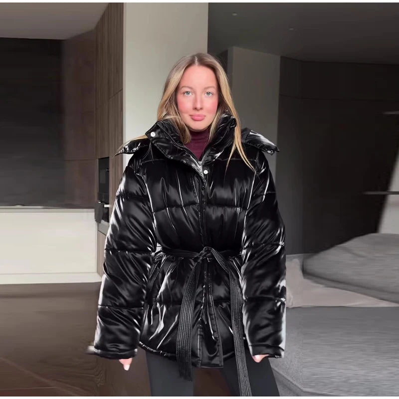 Abrigo Mujer Vintage Brillante - Abrigo Capucha Acolchado Cuello Alto 2025