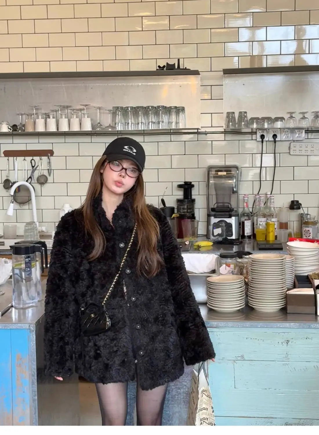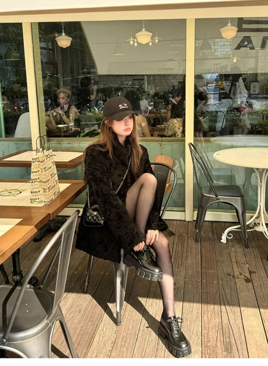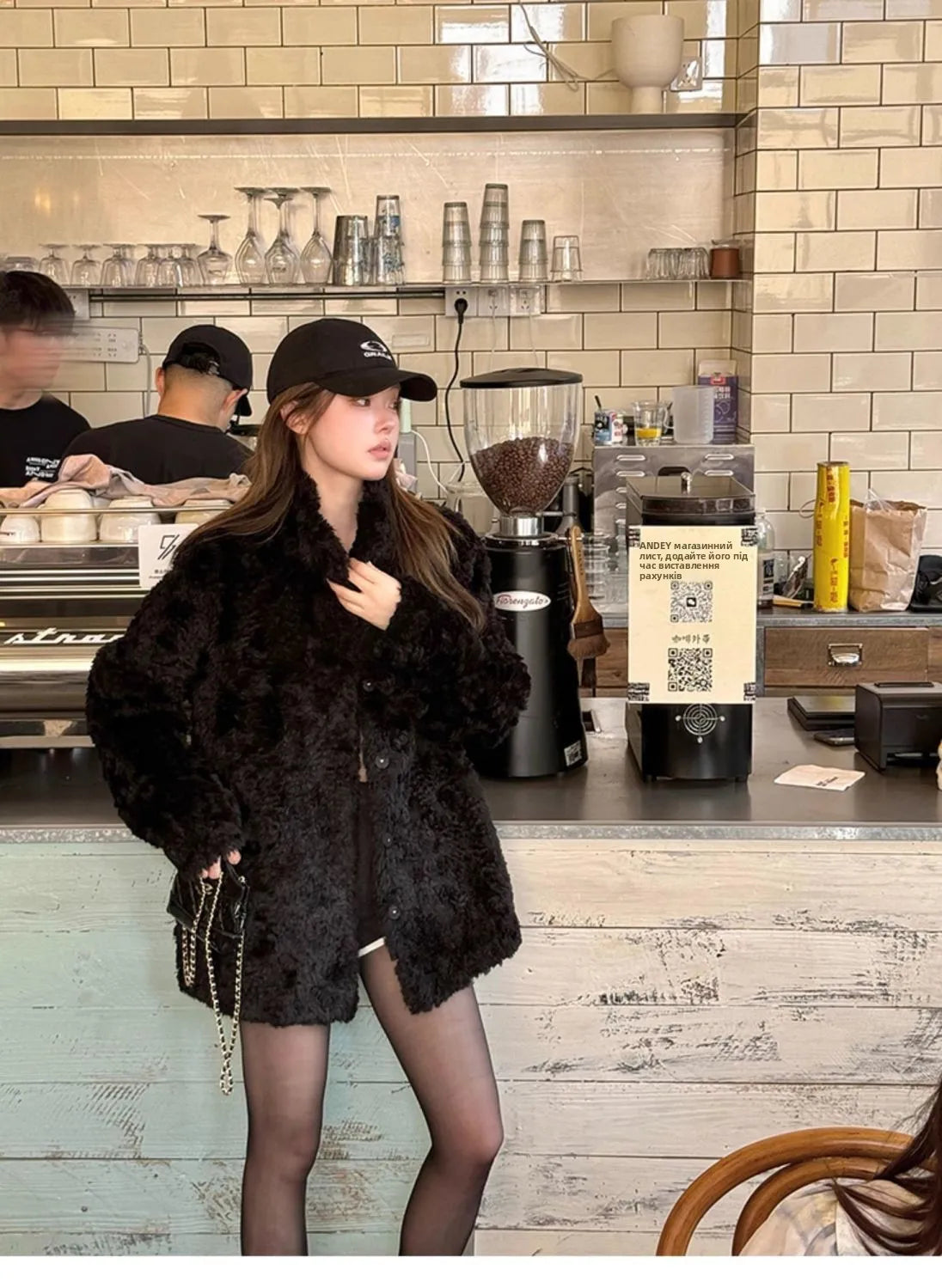 Chaqueta Piel Cordero Mujer Eco - Chaqueta Cuello Alto Coreana Invierno 2025