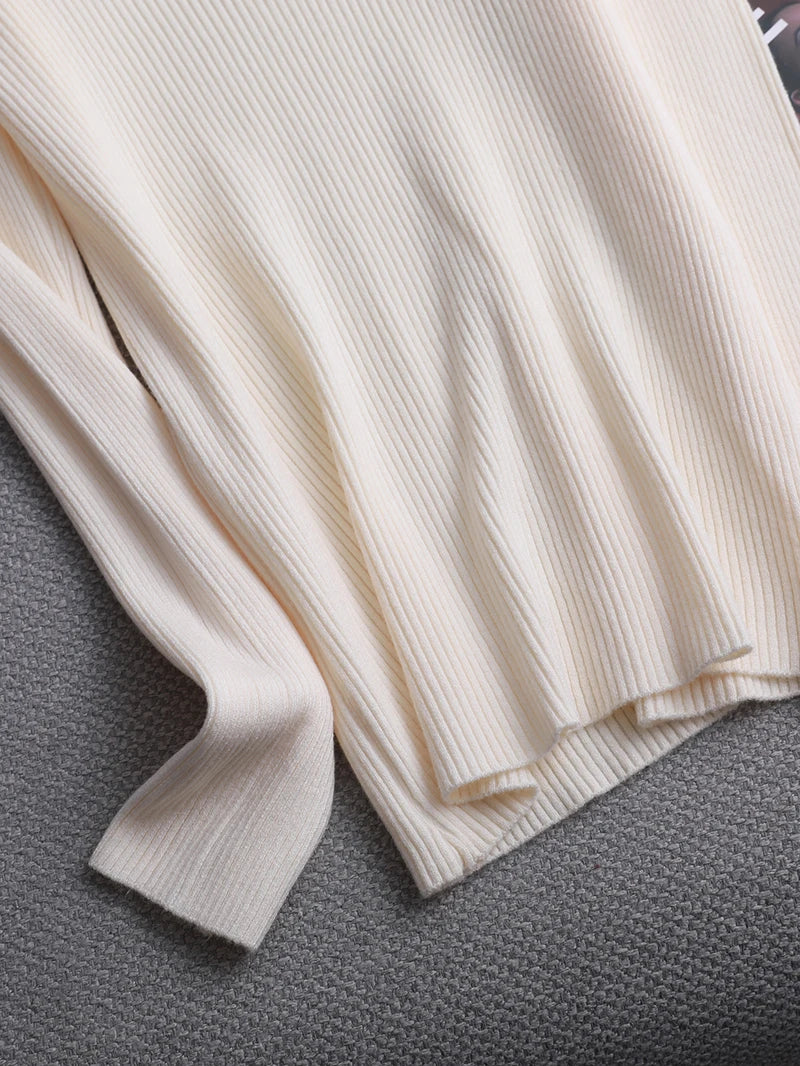 Esencial versátil con este jersey básico de punto. Diseño pullover slim manga larga perfecto para primavera-otoño.