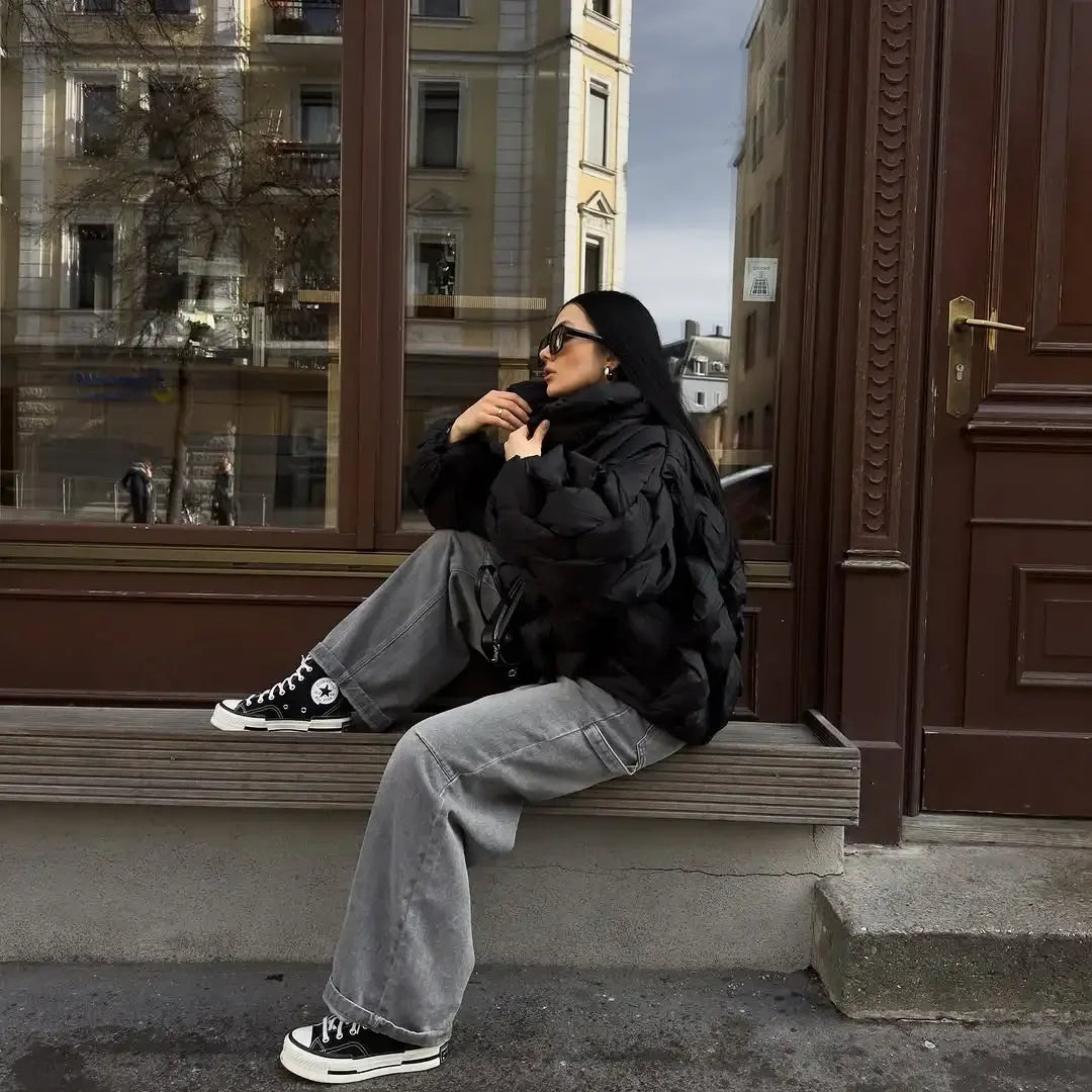 Abrigo Algodón Mujer Casual - Abrigo Cuello Alto Cremallera Corto Invierno