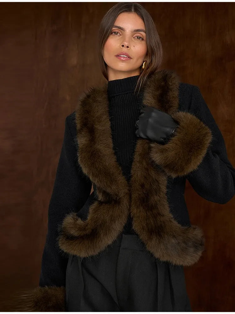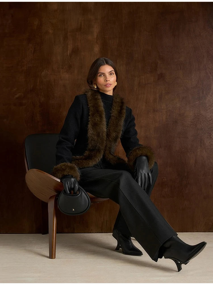 Abrigo Mujer Elegante Cuello Piel - Abrigo Patchwork Slim 2025