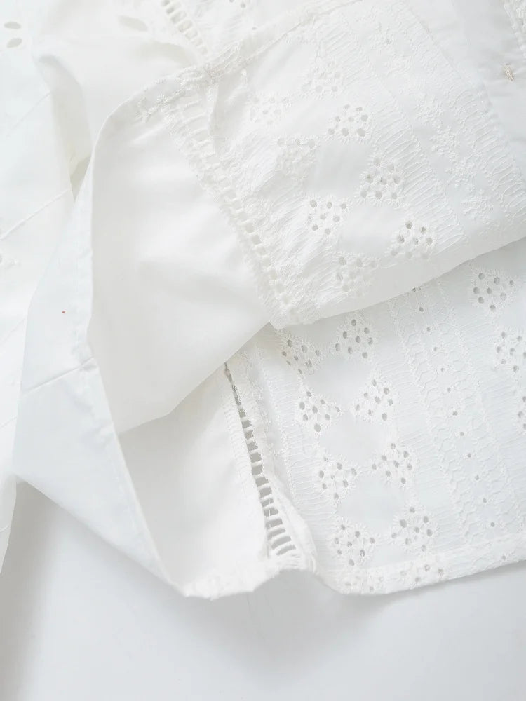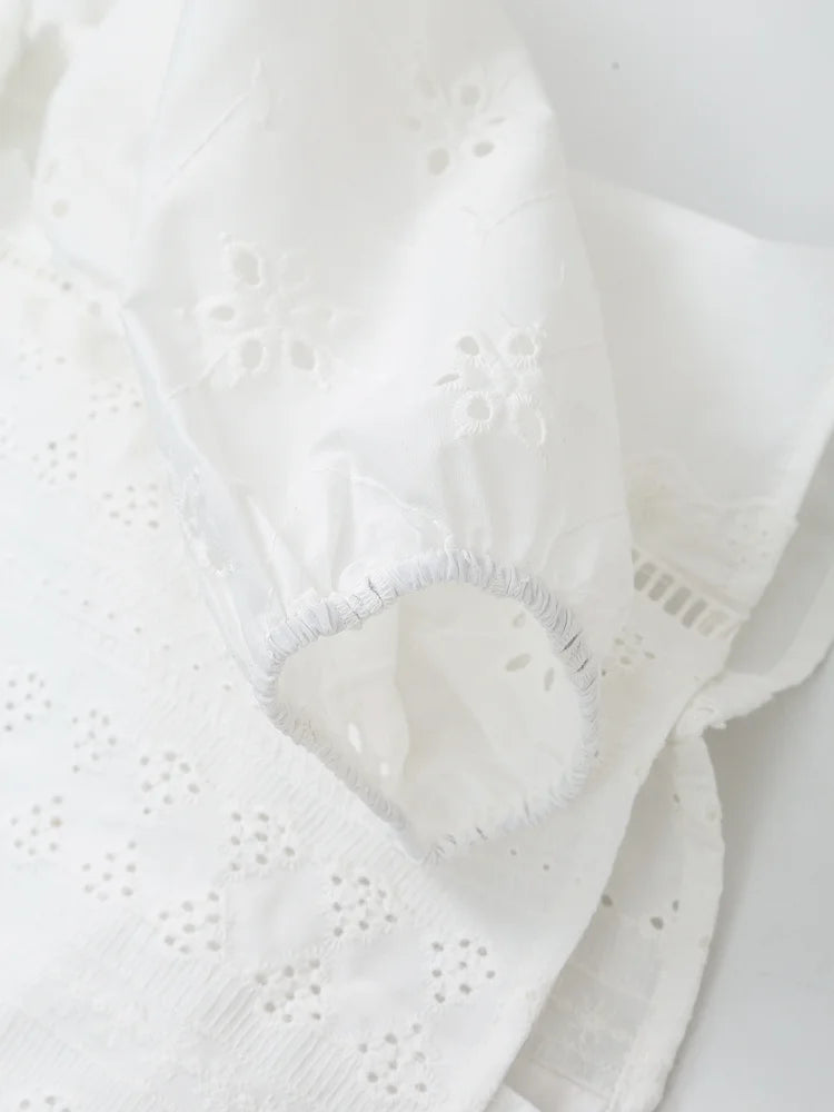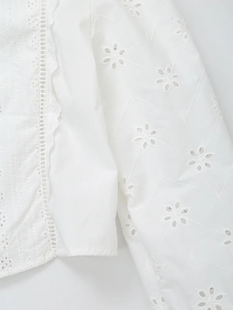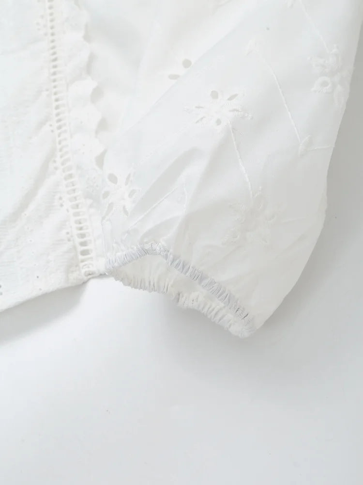 Estilo fashion con esta blusa blanca con bordado 2024. Diseño crop con manga larga y cuello O, perfecta para streetwear.