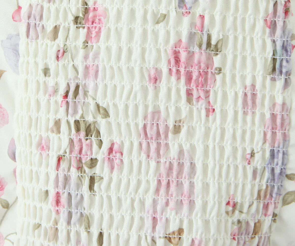 Top crop mujer francés floral verano. Diseño cordones frontal, cuello V manga corta, estilo dulce. Perfecto vacaciones. Moda YENKYE.
