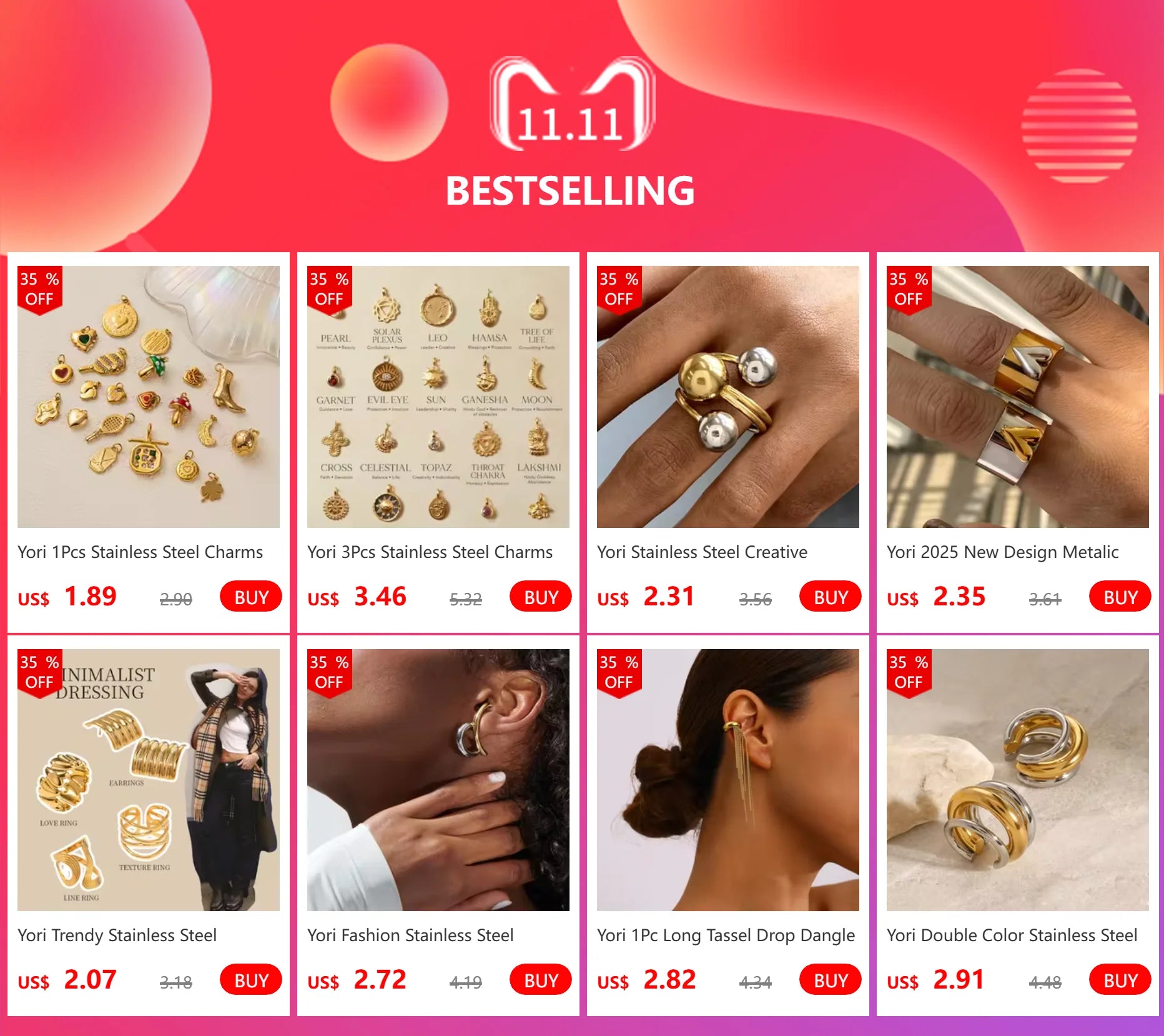 Set anillos apilables Yori personalizados previene alergia. Acero inoxidable color dorado uso diario, fashion joyería 2025 nueva.